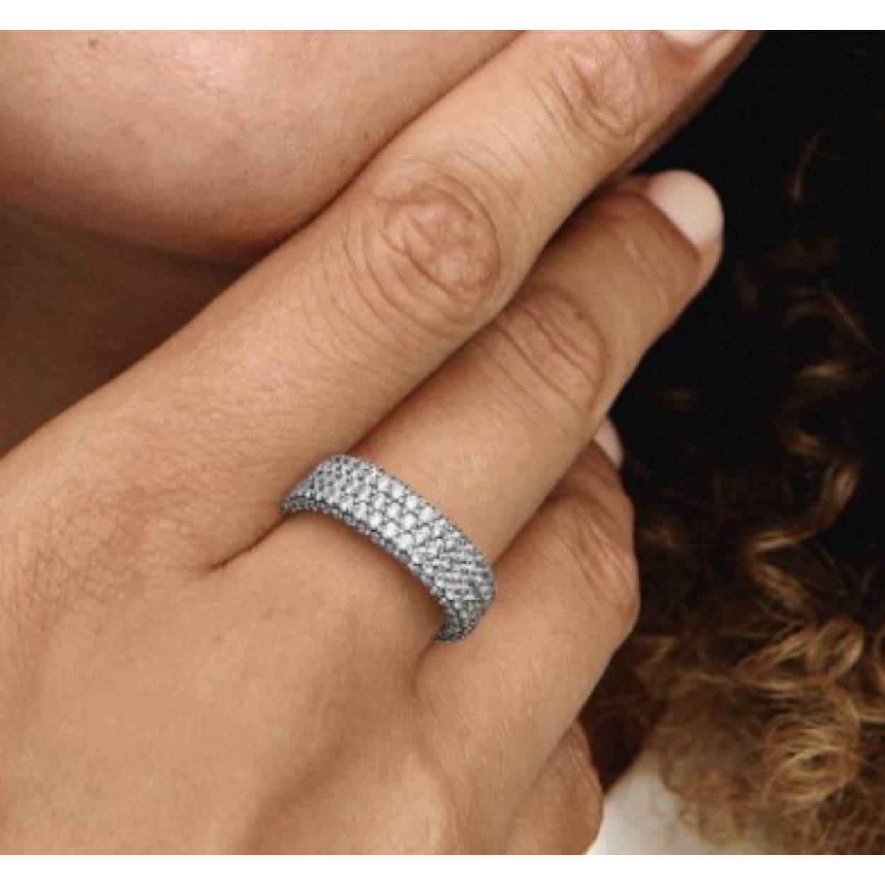Maximaliseer je glans met onze hand-finished Pandora Timeless driedubbele rij pavé ring. Onze hand-finished sterlingzilver Pandora Timeless driedubbele rij pavé ring heeft drie rijen transparante zirkonia rond het midden en één rij naar buiten gericht rond elke kant. Hierdoor ontstaat een licht afgerond vierkant profiel dat vanuit elke hoek sprankelt. Draag alleen of gestapeld met andere Timeless Pavé ringen voor een look die net zo opvallend is als jij wilt.