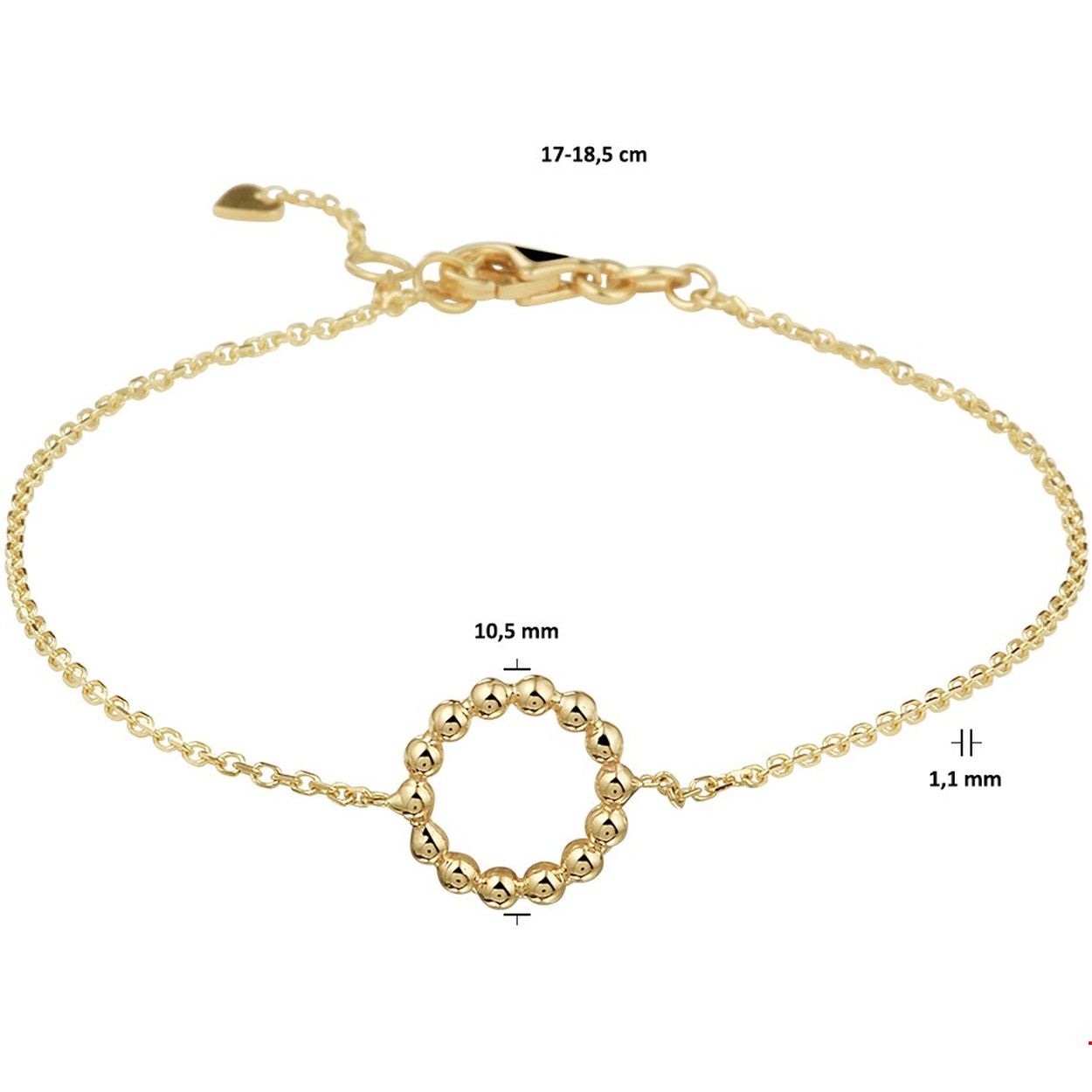 Moderne 14k geelgouden anker armband met poli afgewerkte bolletjes die een open rondje vormen van 10.5mm. De armband is uitgevoerd met een karabijn sluiting en heeft draaglengtes van 17 en 18.5cm. Tip: Deze armband is perfect te combineren met andere gouden bolletjes sieraden uit onze collectie of je eigen stash! Zo creeer je elke keer weer een nieuwe look!