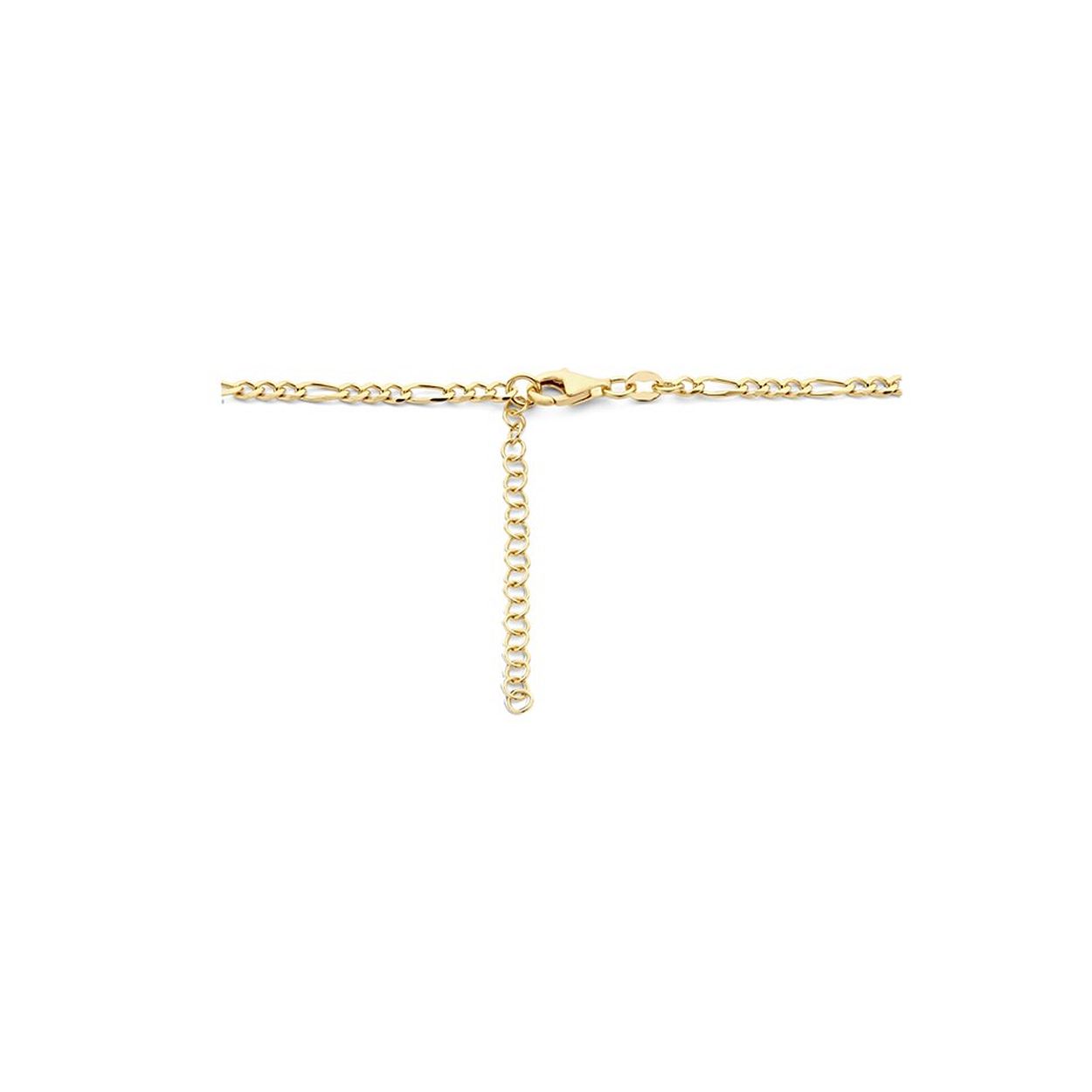 Geelgoud op 925 zilveren figaro collier met een schakelbreedte van 3mm. Het collier heeft een draaglengte van 45cm met een extensie van 5cm en een stevige karabijn sluiting.