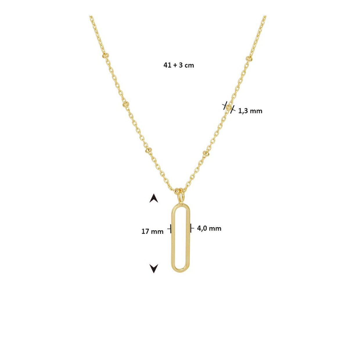 14k Geelgouden collier uitgevoerd met een hanger in de vorm van een schakel. Het collier heeft een draaglengte van 41cm met een extensie van 3cm. De hanger heeft een afmeting van 17x4mm.