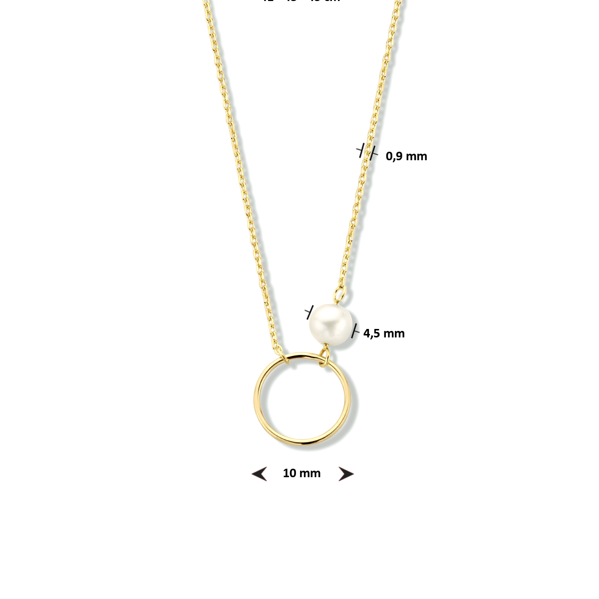 14k Geelgouden anker collier met een rondje en een zoetwaterparel. Het collier heeft draaglengtes van 41, 43 en 45cm. Uitgevoerd met een stevige karabijn sluiting. De schakelbreedte is 0.9mm.