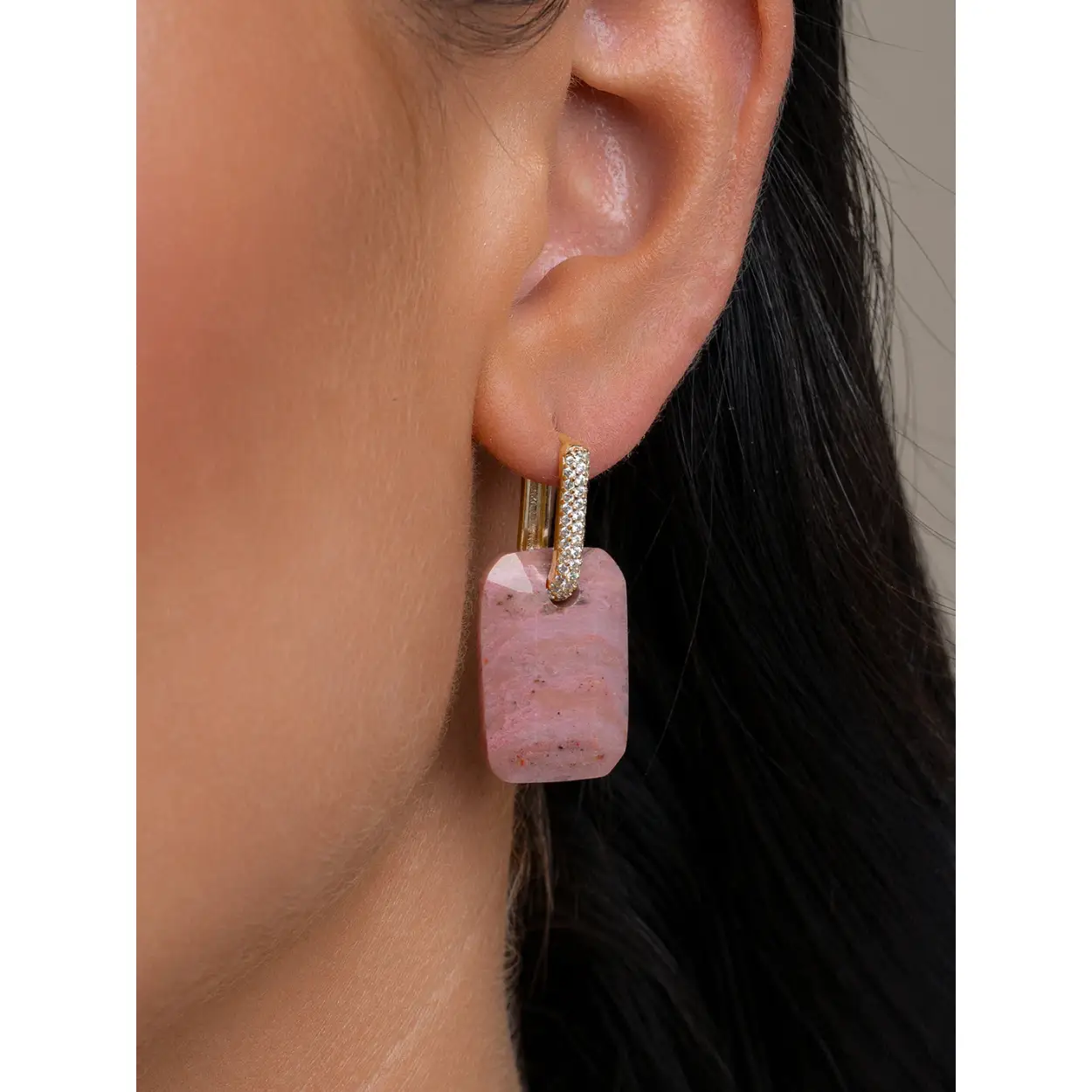 De oorbeledelstenen zijn gemaakt van echte Pink Rhodonite edelstenen. Ze zijn prachtig gefacetteerd en omdat onze edelsteen sieraden met de hand worden vervaardigd, is elke set oorbeledelstenen uniek!