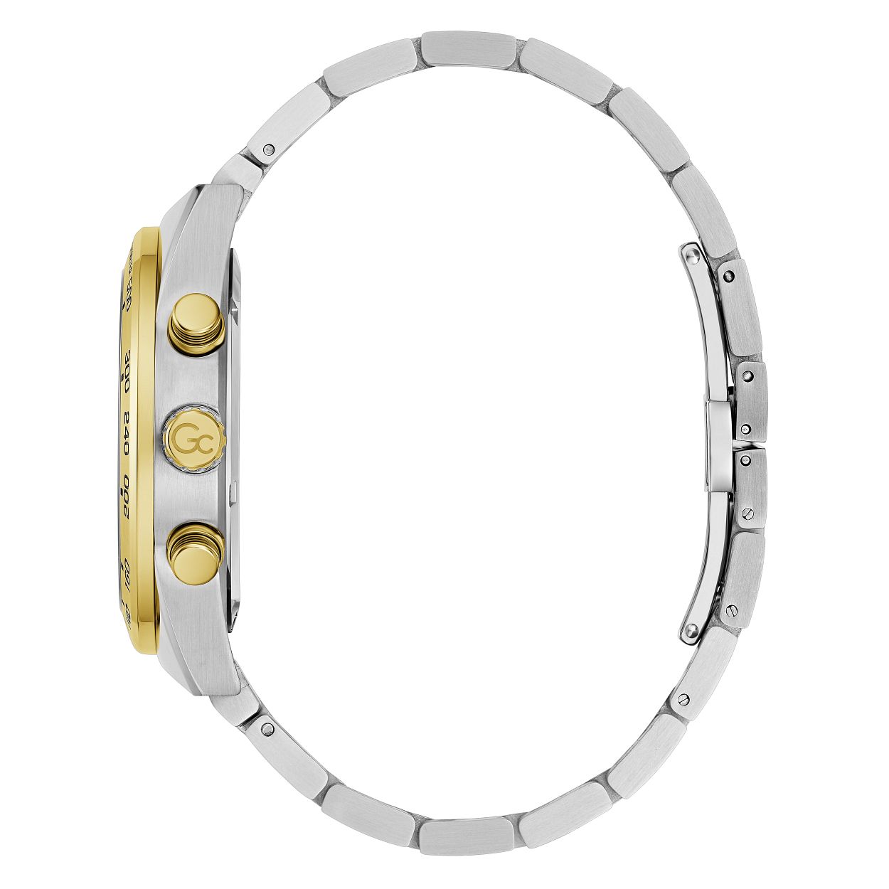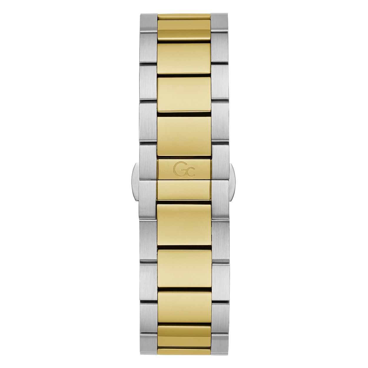 Dit sportieve two-toned herenhorloge uit de Gc Clubhouse serie is een echt fashionstatement! De goudkleurige chronograaf heeft een diameter van 41 mm en dankt zijn stoere look onder andere aan zijn groene wijzerplaat met goudkleurige accenten. De wijzers zijn voorzien van een Super-LumiNova coating. Dit exclusieve horloge is uitgevoerd met saffier gecoat mineraalglas en is tot 10 ATM waterdicht.