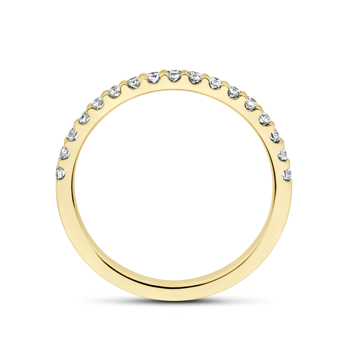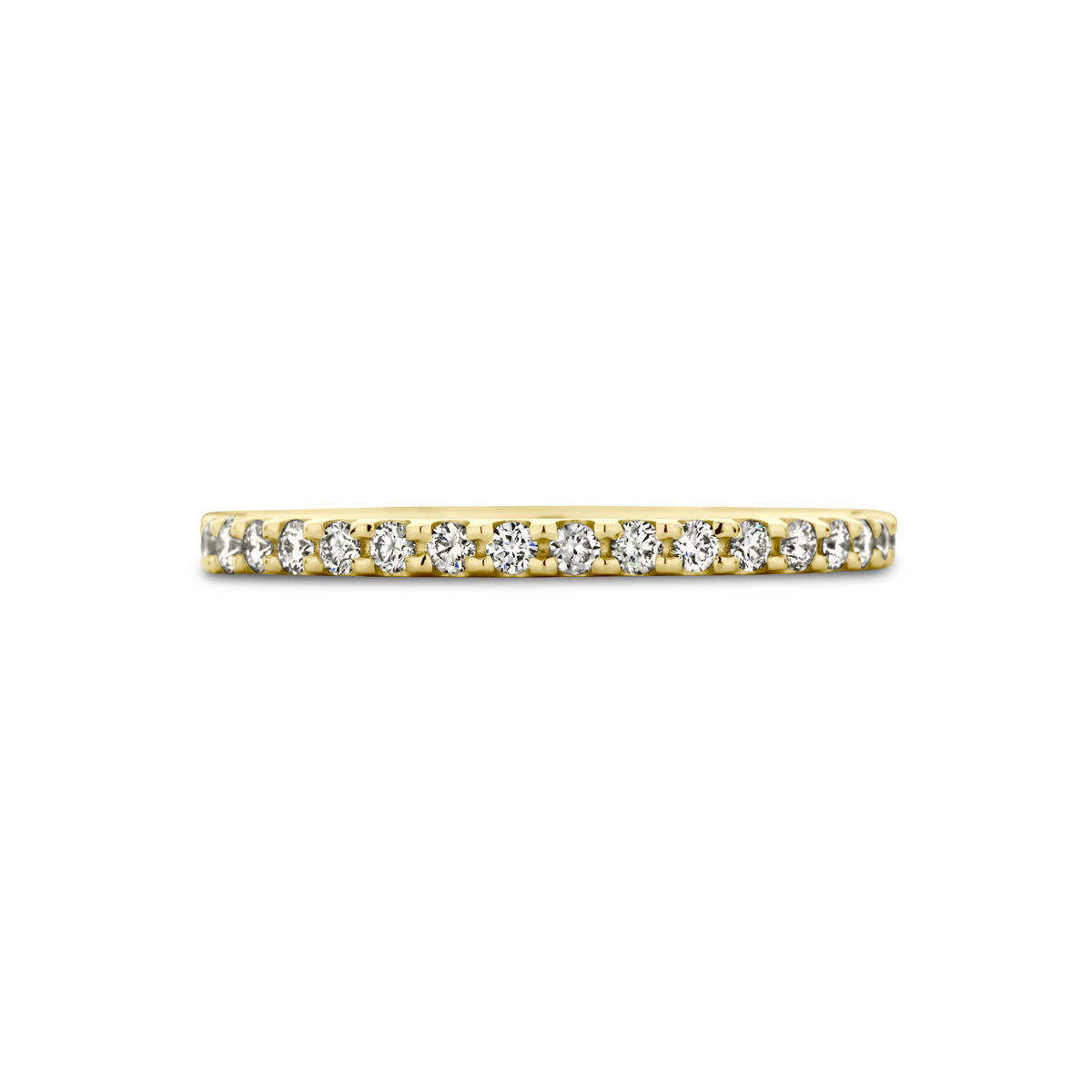 18k Geelgouden ring uitgevoerd met diamant. De ring heeft een breedte van 1.7mm.