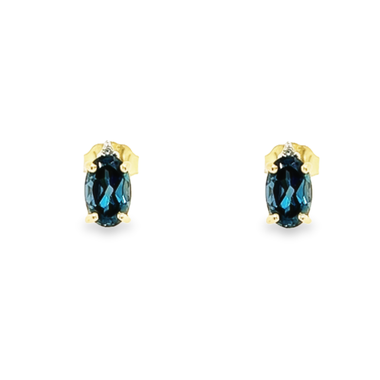 Deze geel gouden oorstekers hebben ieder een London Blue Topaas gezet tussen vier zetpoten met daar boven een diamantje. Deze oorstekers hebben een subtiele uitstraling en hebben een prachtige kleur.