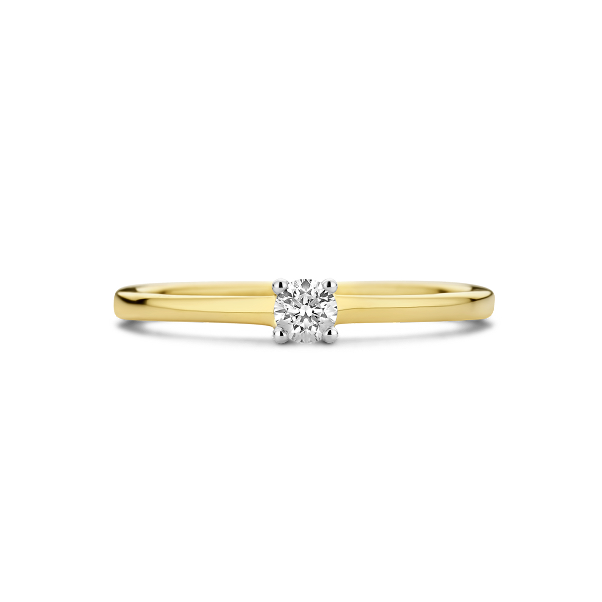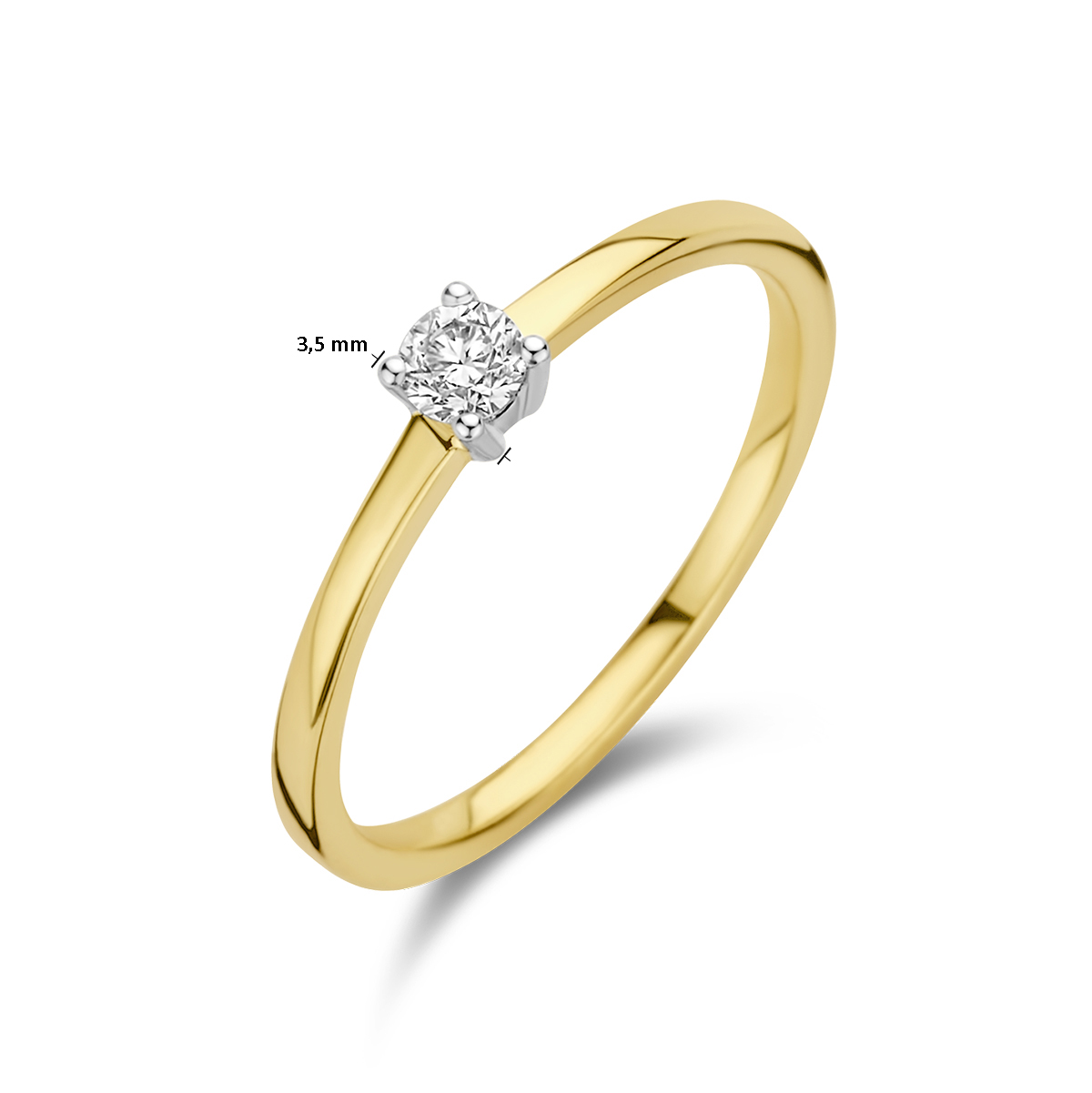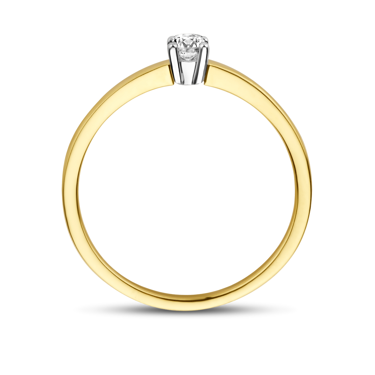 14k Bicolor geel- en witgouden ring uitgevoerd met schitterend diamant. De ring heeft een breedte van 3.5mm. De totale diamantgewicht is 0.15ct.