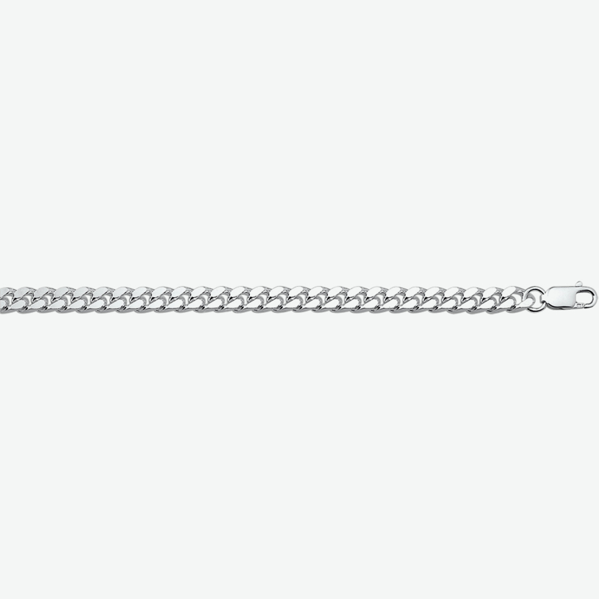 Zilveren lengte artikel met geslepen gourmette schakel. De schakelbreedte is 5.5mm.