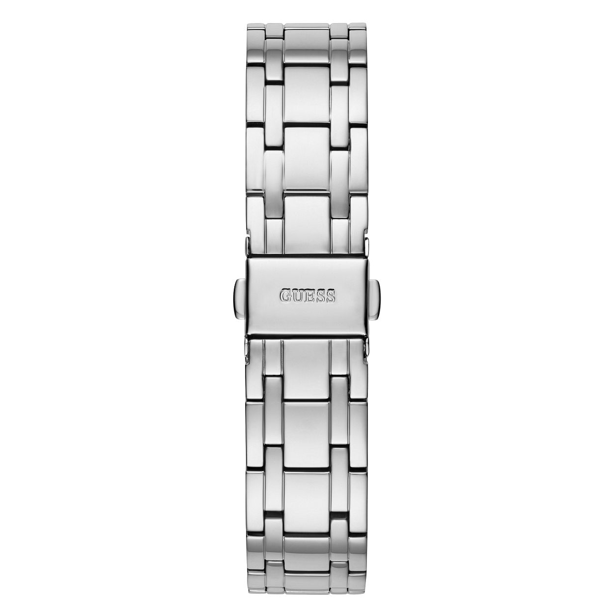 Dit zilverkleurige dameshorloge uit de COSMO serie van Guess Wathces is een tijdloze klassieker met een twist. De opvallende lichtblauwe wijzerplaat is omringd door een bijzondere lunet gezet met kristallen. De kast heeft een diameter van 36 mm en de zilverkleurige wijzers zijn voorzien van een Super-LumiNova coating. Het horloge is tot 3 ATM waterdicht.