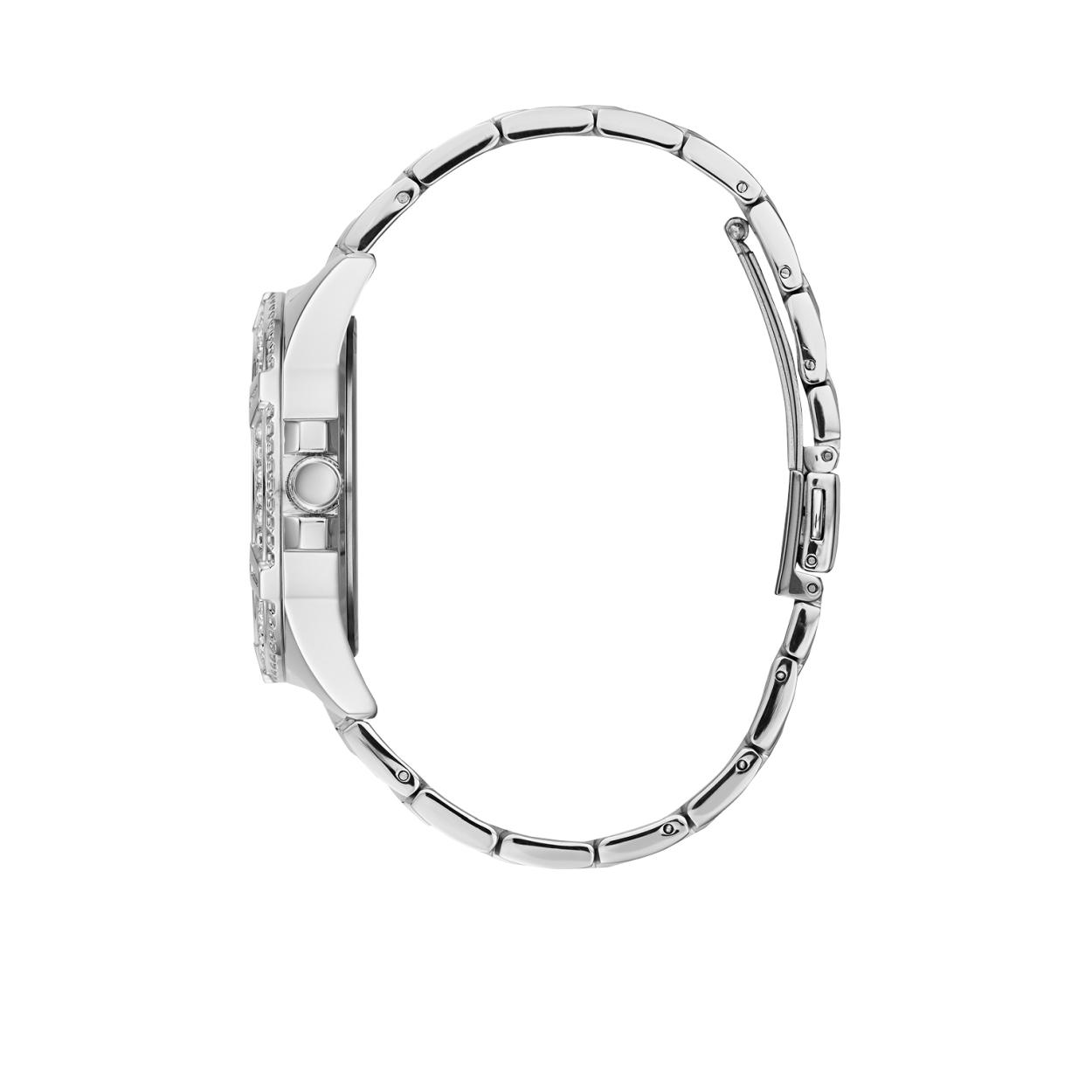 Houd jij van Bling? Dan is de nieuwe Lady Frontier wat voor jou. Dit nieuwe dames GUESS horloge heeft een ronde kast met een diameter van 40 mm. De lunet en de wijzerplaat zijn helemaal gezet met chrystals voor een sprankelend effect. De schakelband van 19cm sluit middels een vouwsluiting. Het horloge is tot 5 ATM waterdicht. Model: W1156L1