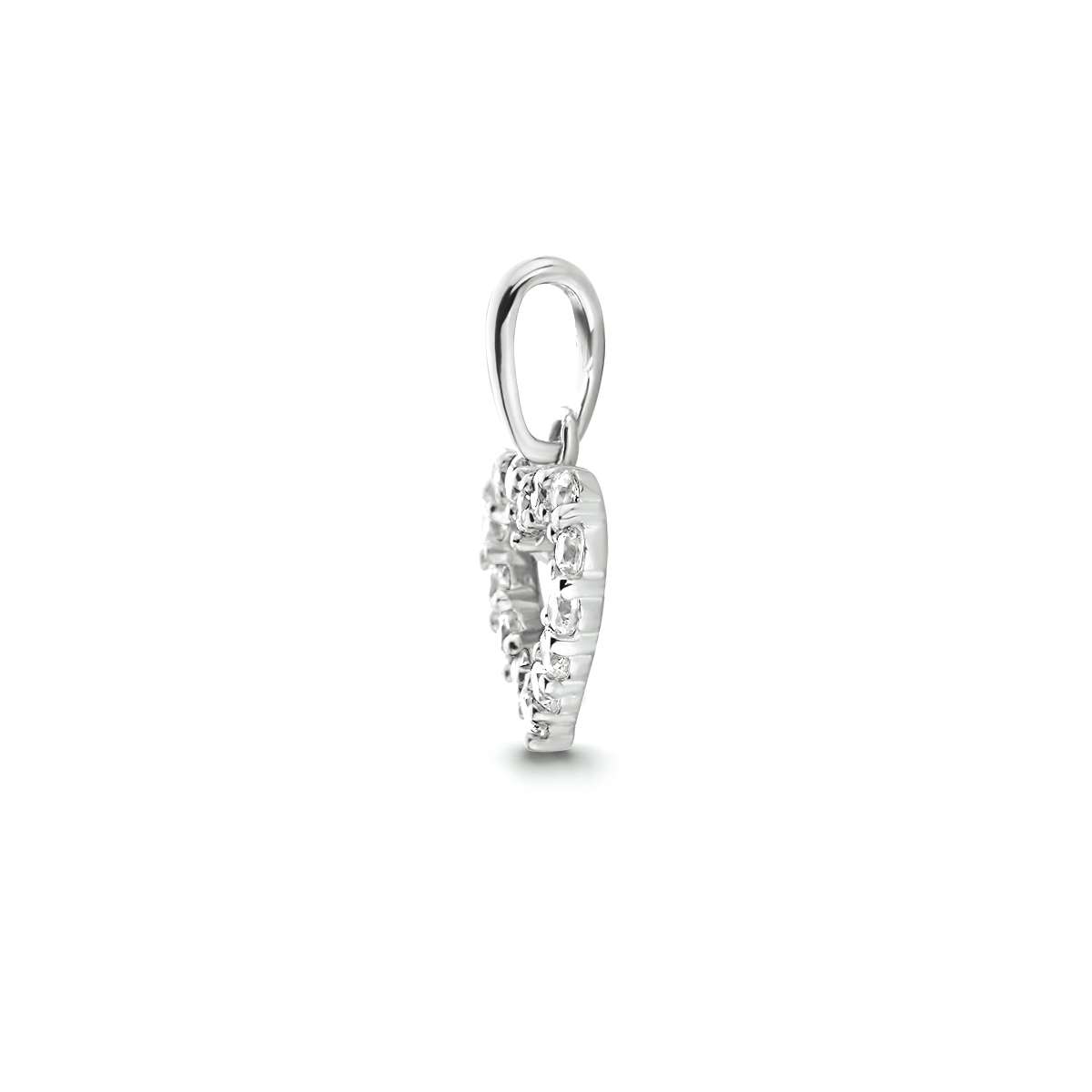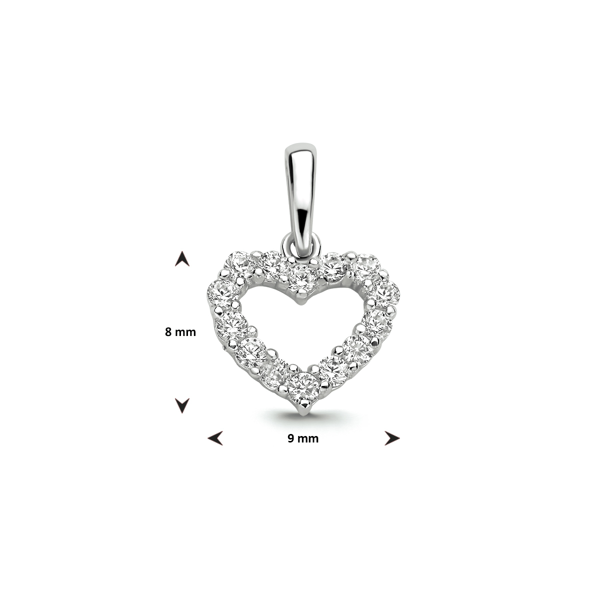 14k Witgouden hanger in hartvorm, uitgevoerd met een schitterende zirkonia rij. De hanger heeft een afmeting van 8x9mm.