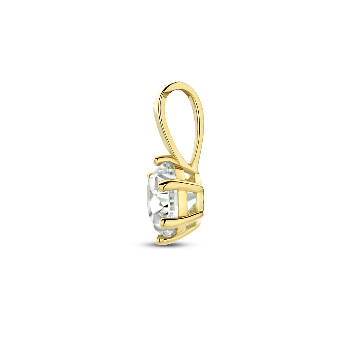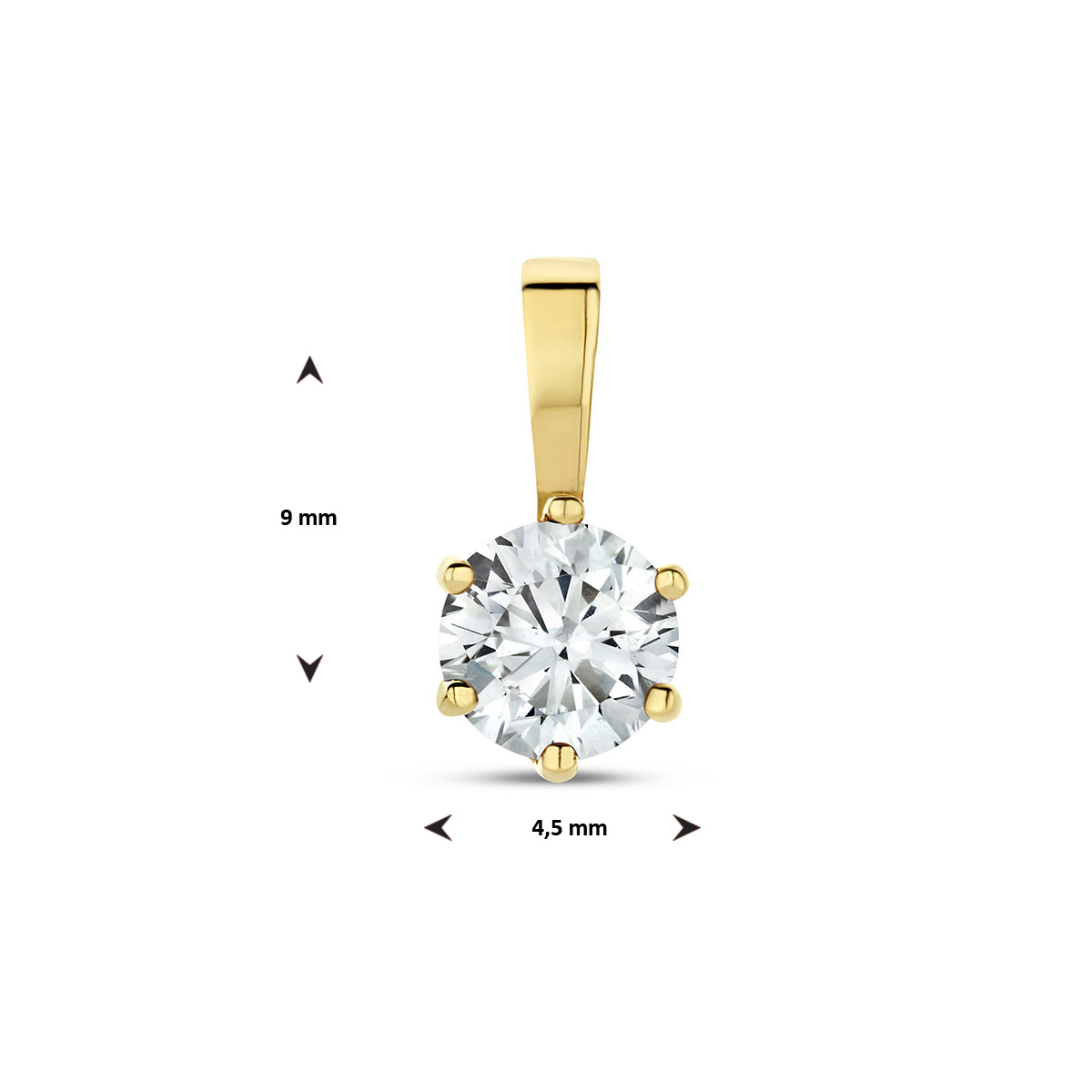 14k Geelgouden geboortesteen hanger uitgevoerd met een schitterende zirkonia. De hanger heeft een afmeting van 9x4.5mm.