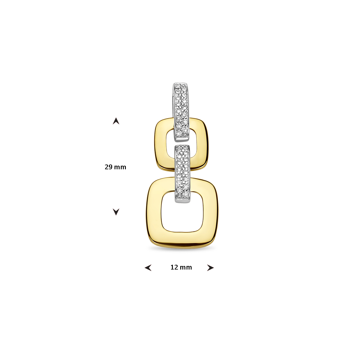 14k Bicolor geel- en witgouden hanger uitgevoerd met schitterend diamant. De hanger heeft een totale hoogte van 29mm. De totale diamantgewicht is 0.13ct.