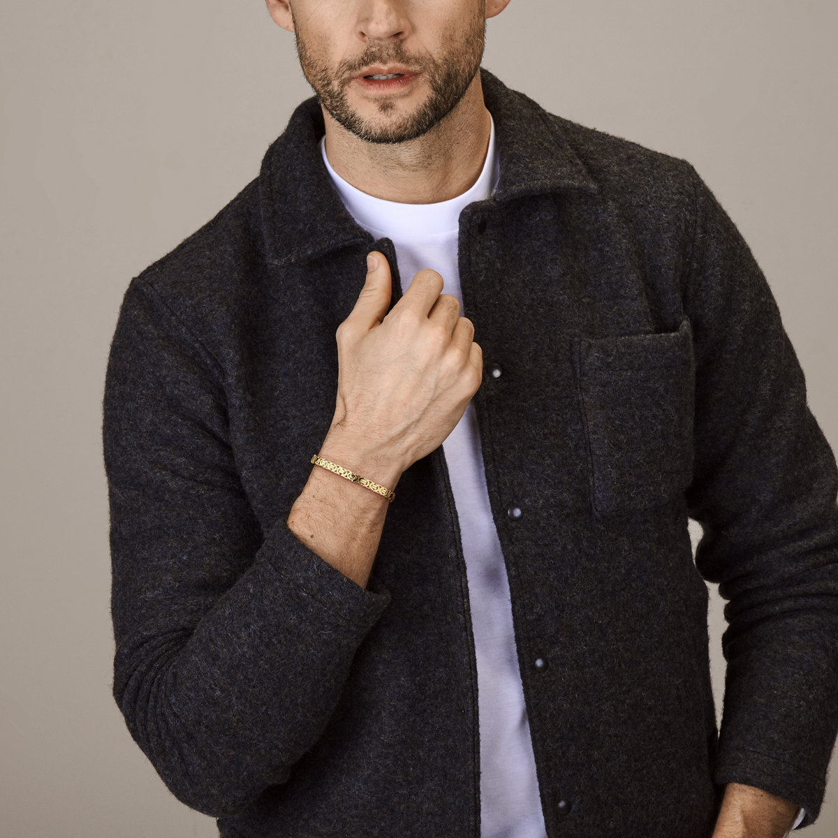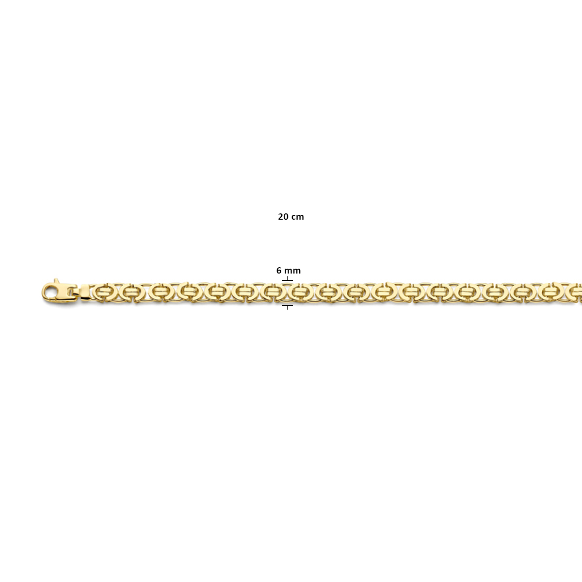 Geelgouden lengte artikel met platte konings schakel. De schakelbreedte is 6mm.