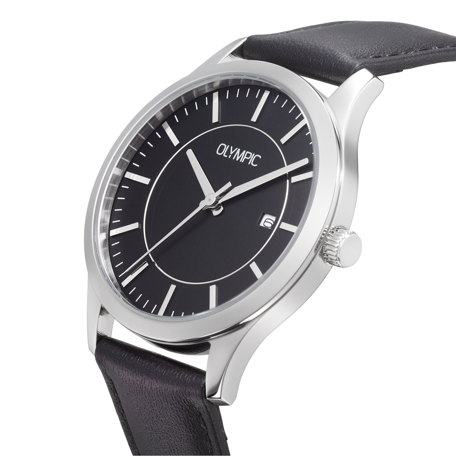 Dit unieke Olympic model met artikelnummer: OL80HSL001 is een klassiek herenhorloge. Het horloge heeft een stalen kast met een gladde bezel en een matte zwarte wijzerplaat met een datum en fijne uursaanduiding. Aan de kast zit een zwarte lerenband met een gespsluiting. Het horloge heeft een mineraalglas, een doorsnee van 40mm en is 5ATM.