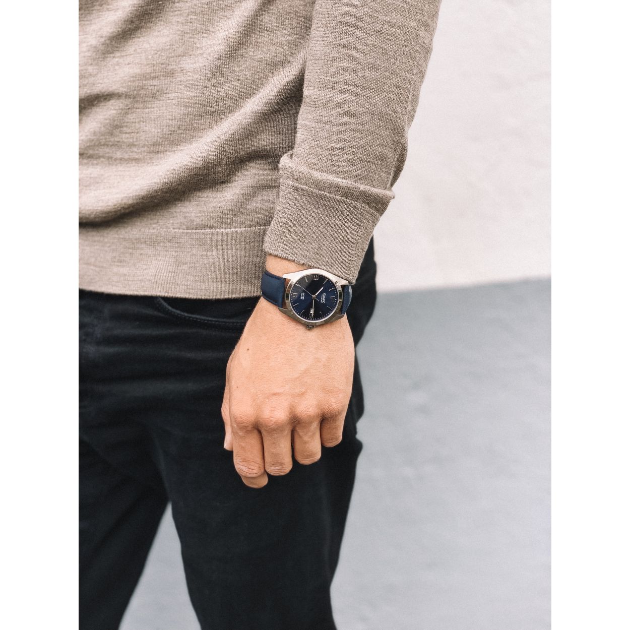 Chique maar dan van oersterk titanium en dat ook in een tijdloos design. Dat maakt het dragen toegankelijk voor iedere gelegenheid. De donkerblauwe wijzerplaat is duidelijk leesbaar, maar tegelijkertijd ook strak van design. De titanium kast is sterk, licht en voorkomt allergische reacties.