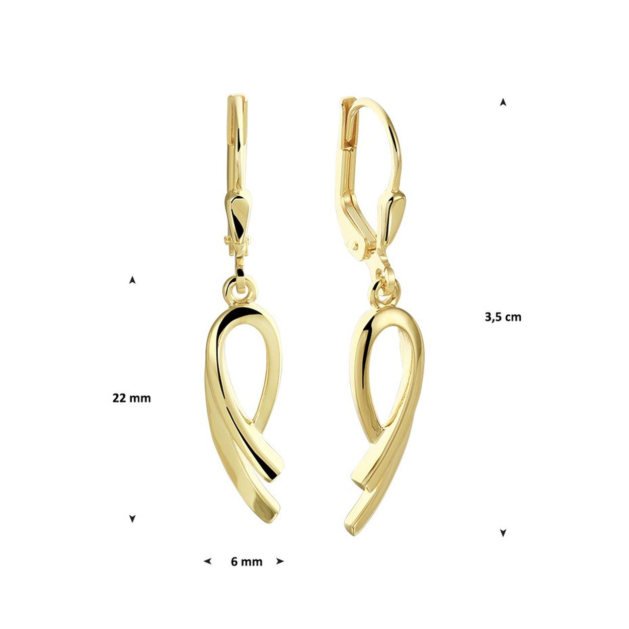 Sierlijke 14k geelgouden oorhangers uitgevoerd met een hanger van 22x6mm. De oorhangers hebben een totale hoogte van 35mm.