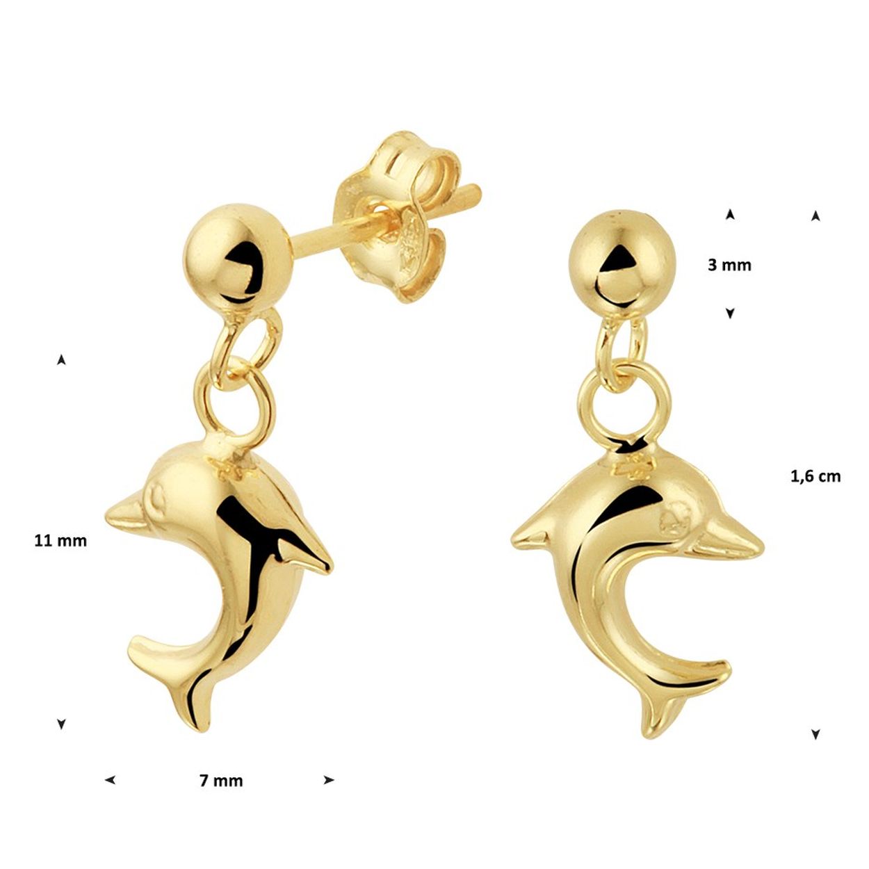 14k Geelgouden oorhangers uitgevoerd met een leuke dolfijn van 11x7mm. De oorhangers hebben een totale hoogte van 1.6cm.