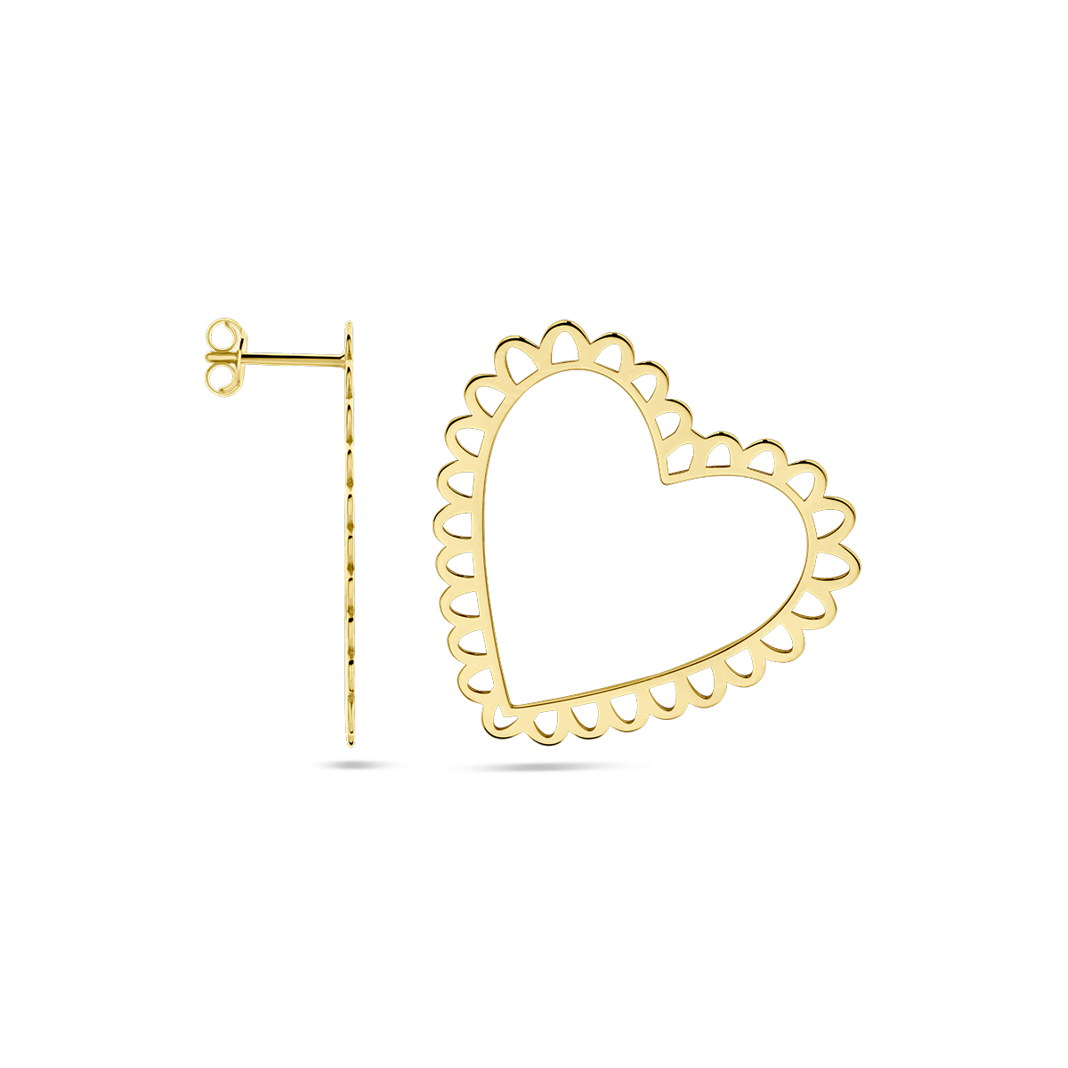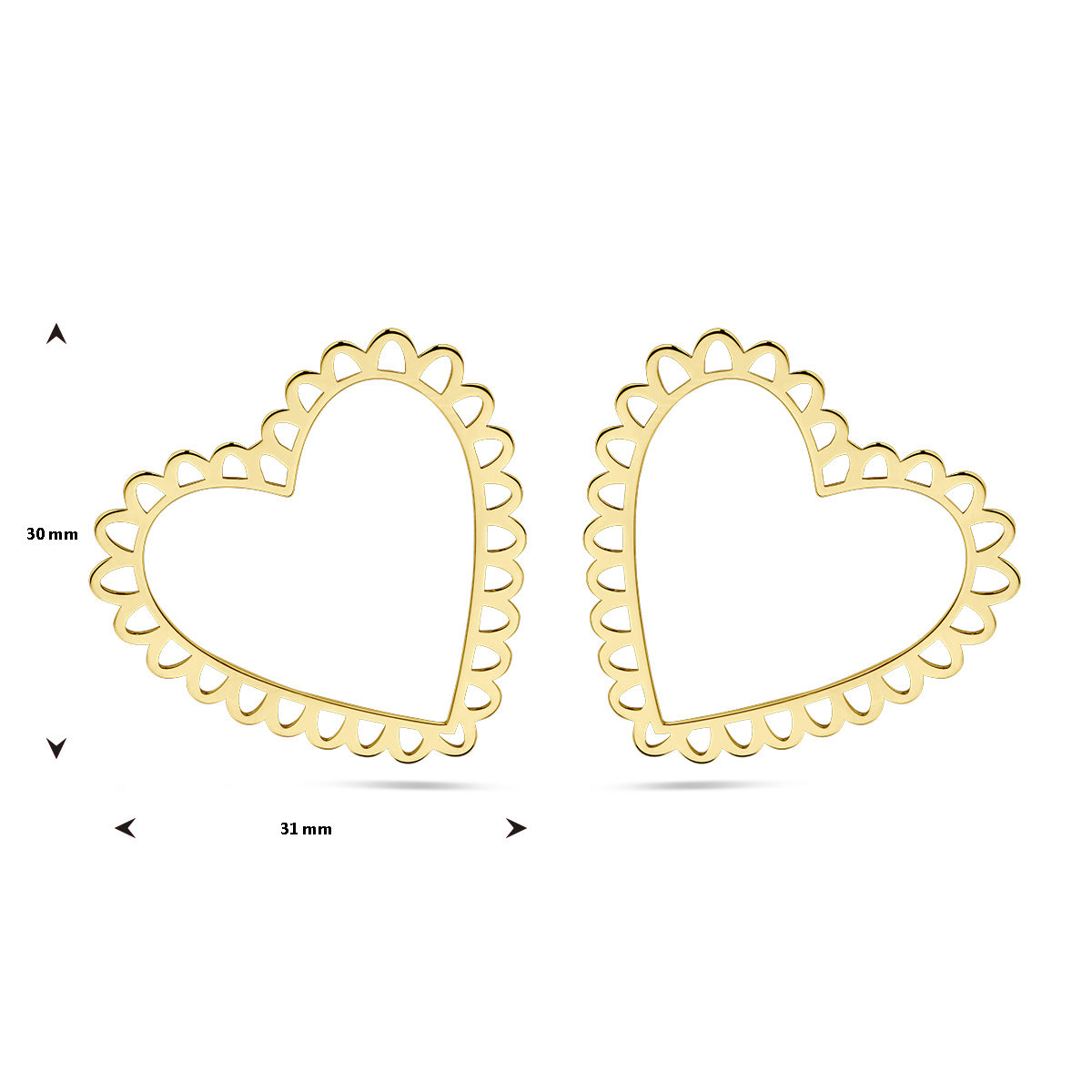 Gerhodineerd 925 zilveren oorknoppen uitgevoerd met een hart. De oorknoppen hebben een afmeting van 30x31mm.