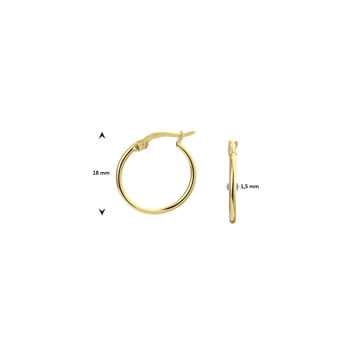 14k Geelgouden oorringen. De oorringen hebben een afmeting van 18x1.5mm.