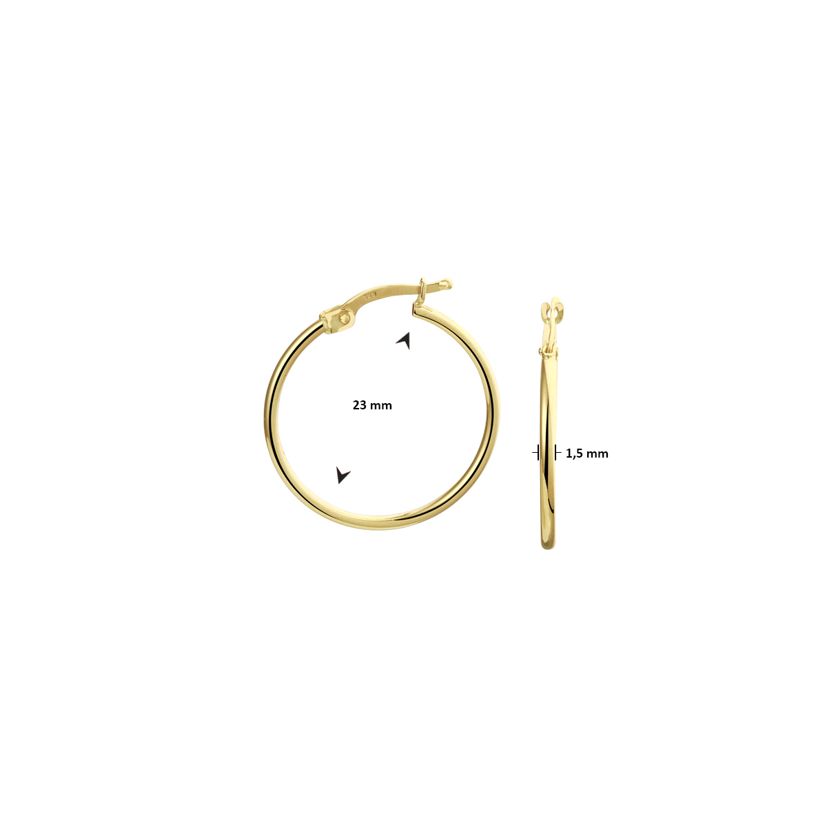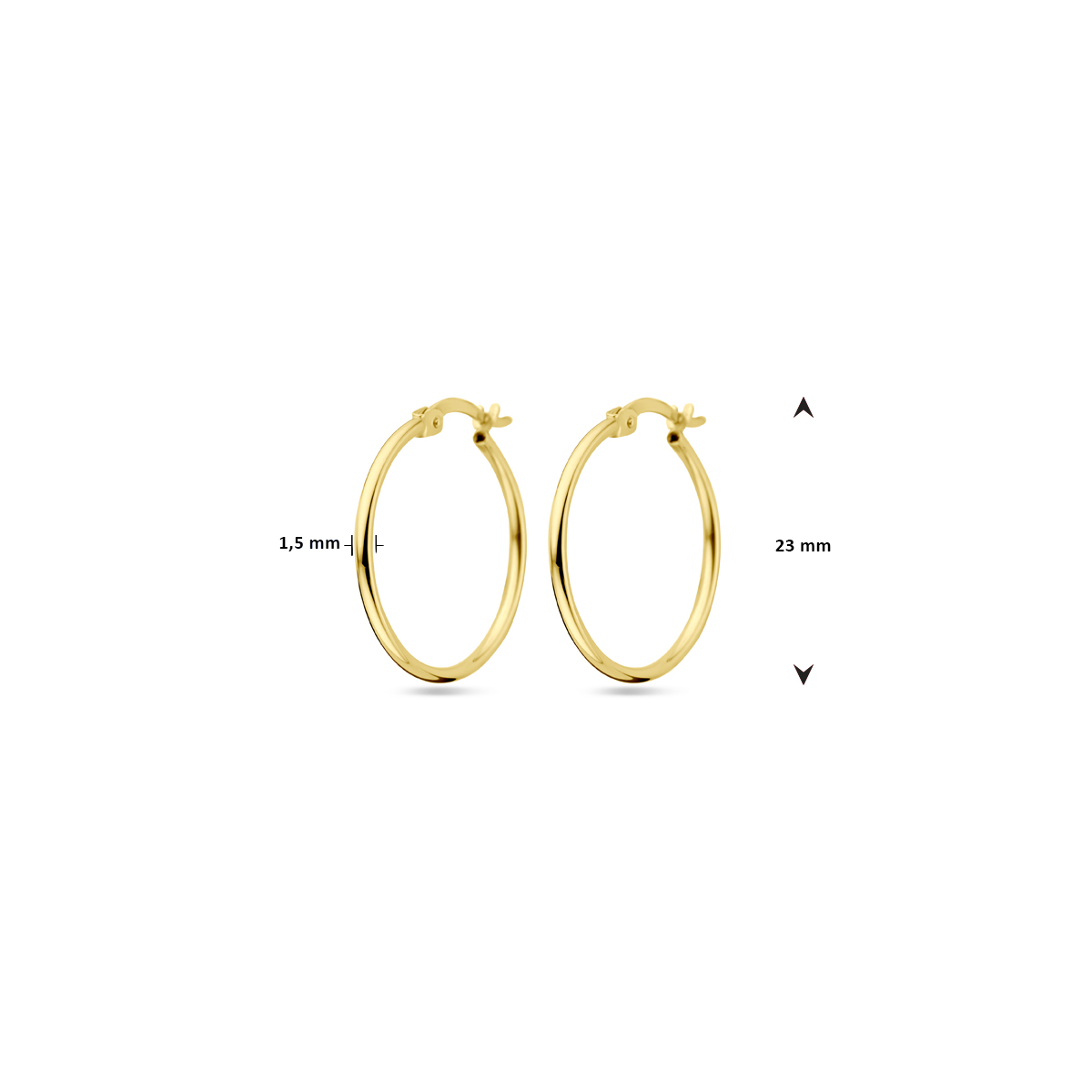14k Geelgouden oorringen. De oorringen hebben een afmeting van 23x1.5mm.