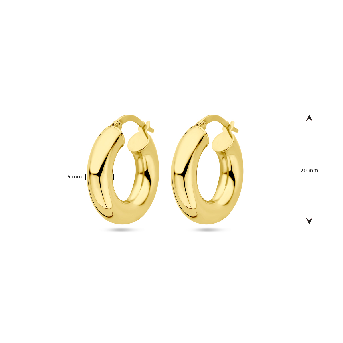 14k Geelgouden oorringen met een dikte van 5mm.