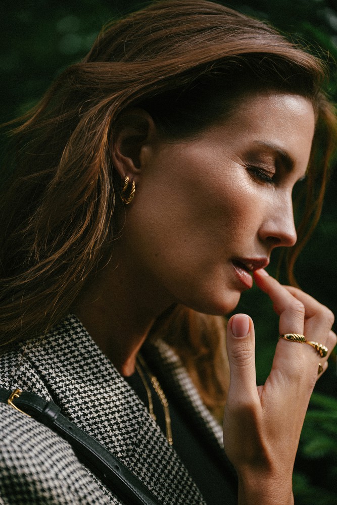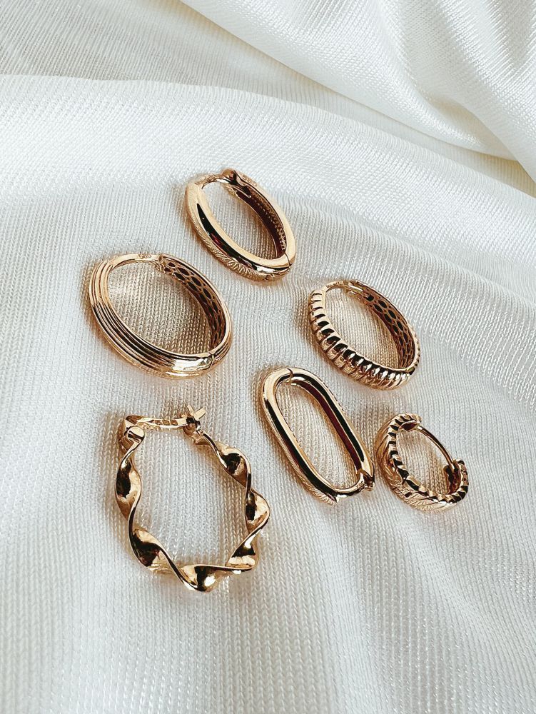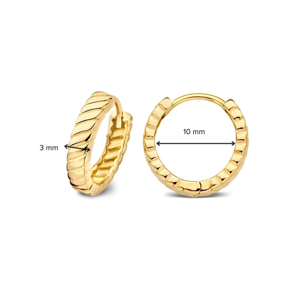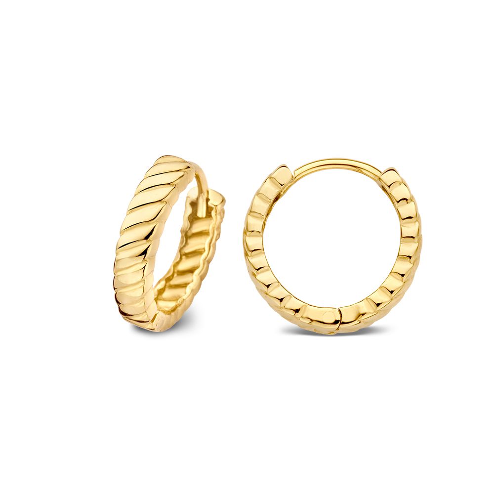 Geelgouden oorringen met gestreept patroon.