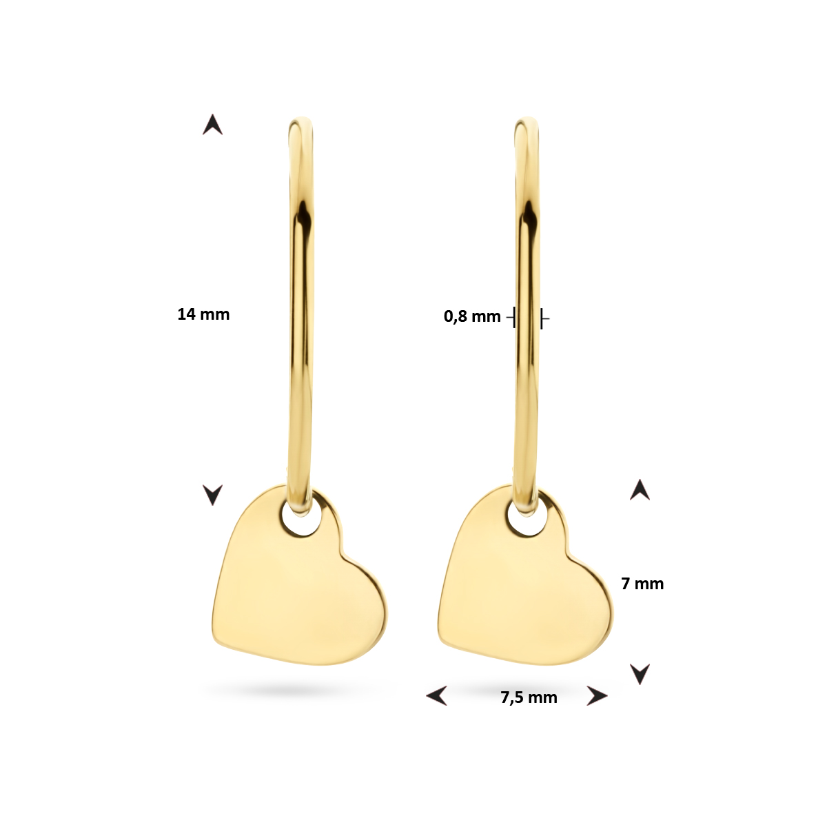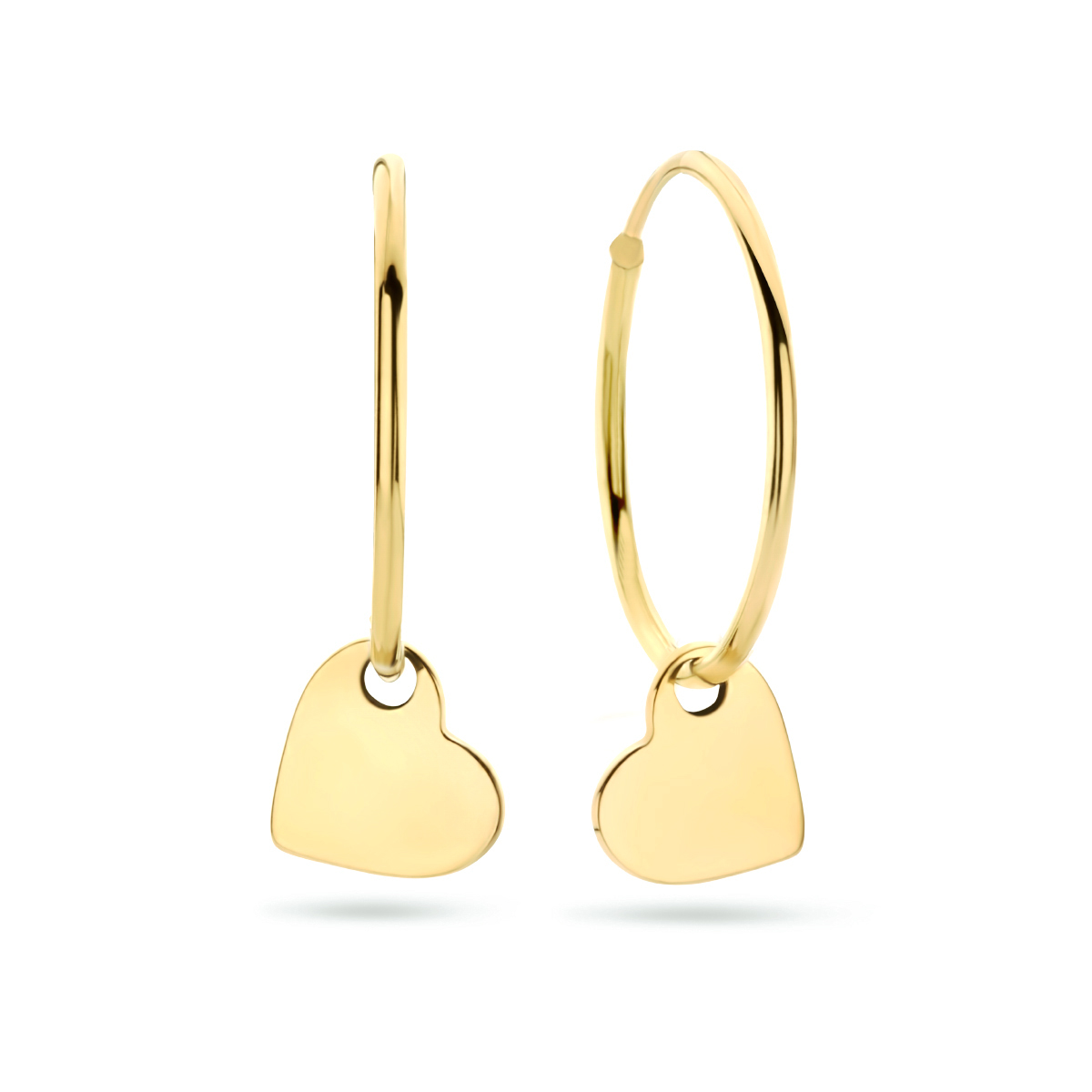 14k Geelgouden oorringen uitgevoerd met een hart. De oorringen hebben een diameter 14mm.