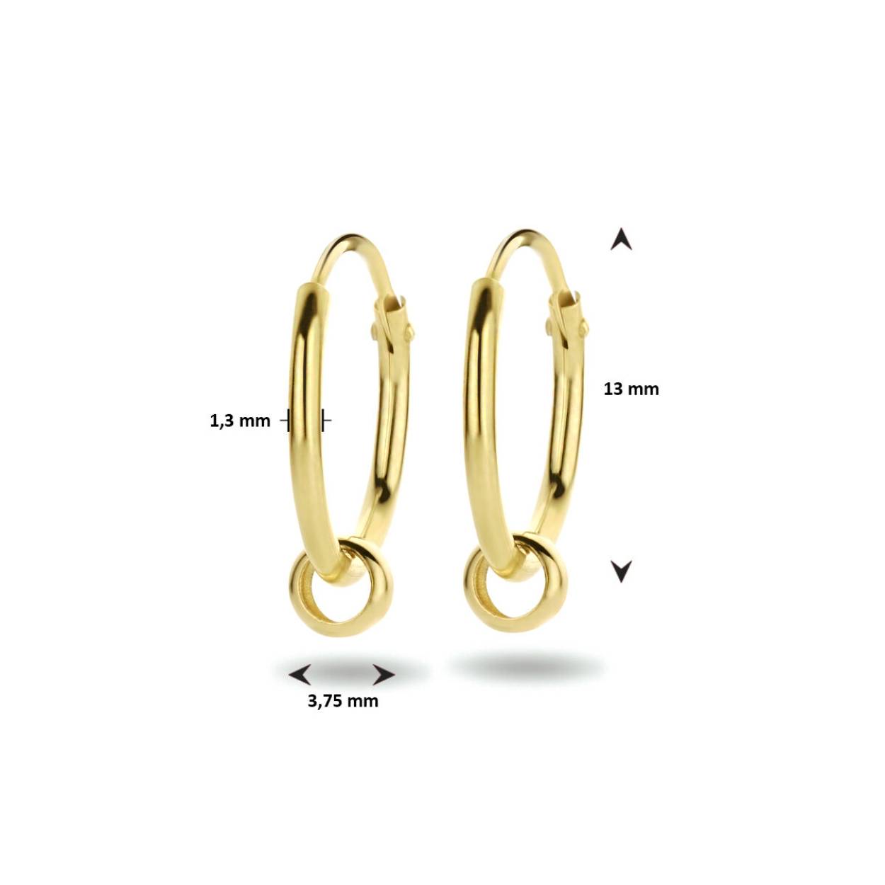 14k Geelgouden oorringen uitgevoerd met ringetjes. De oorringen hebben een diameter van 13mm en een dikte van 1.3mm. De ringetjes hebben een diameter van 3.75mm.