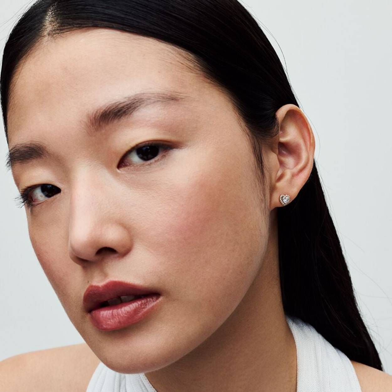 Hart 14K vergulde oorbellen met een heldere kubieke zirkonia