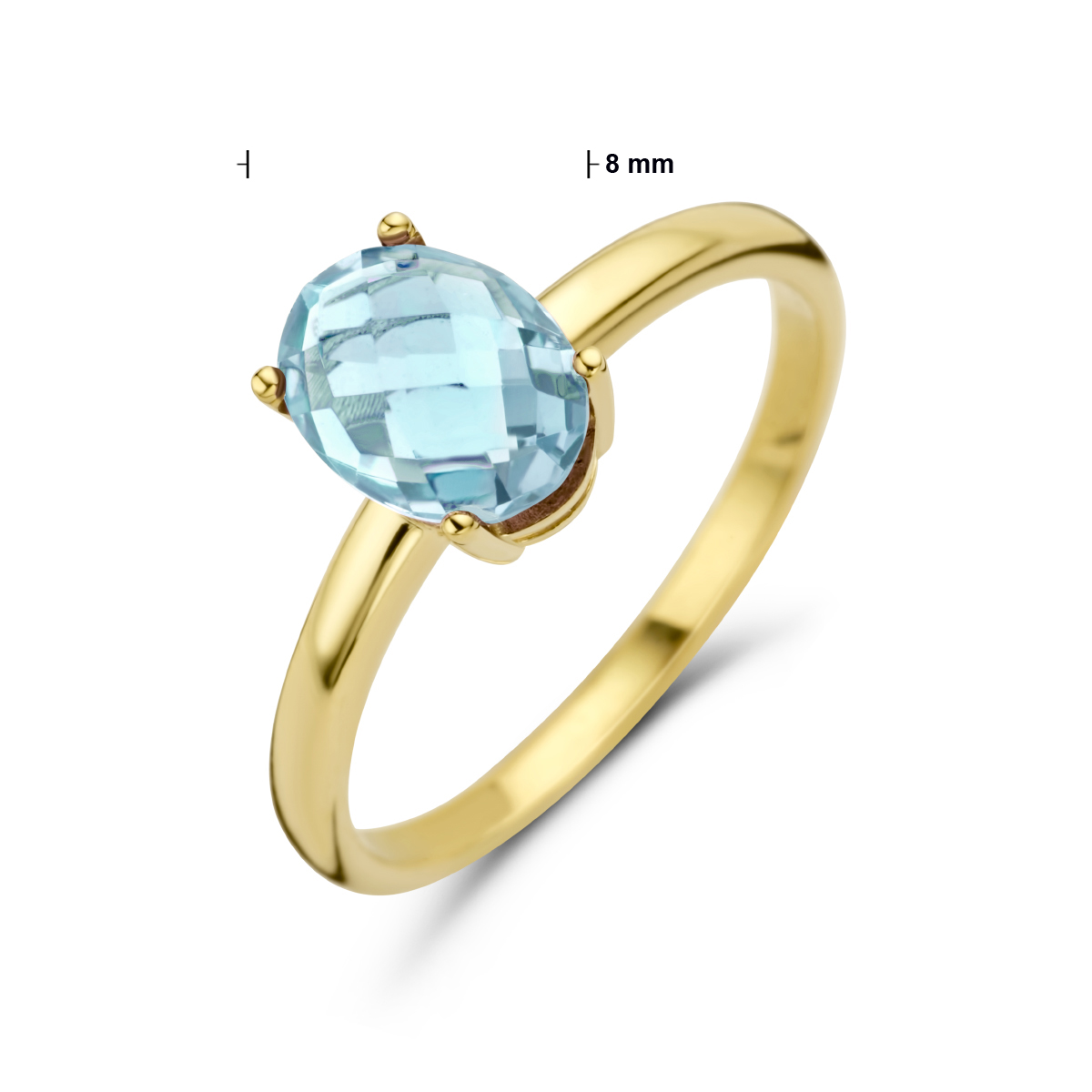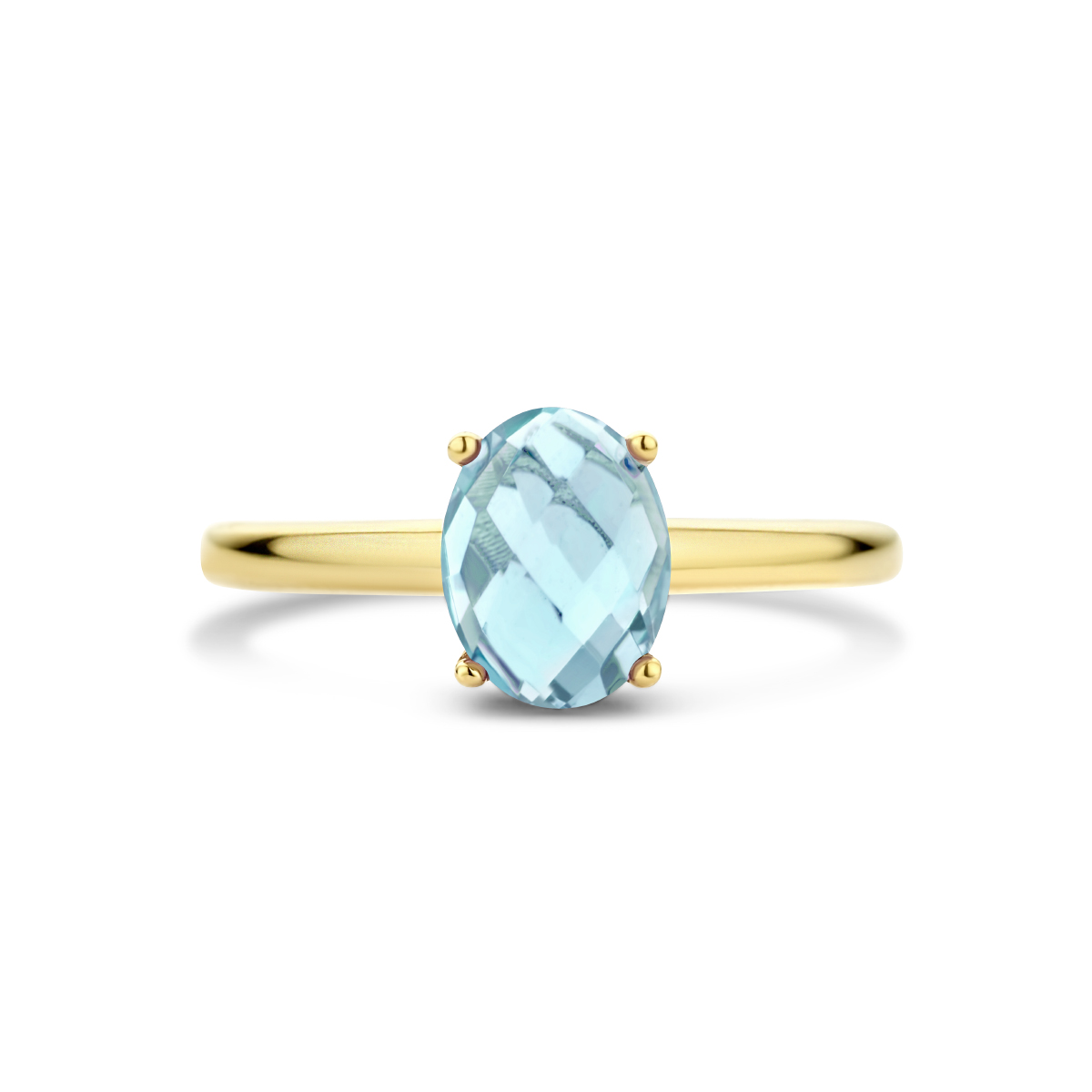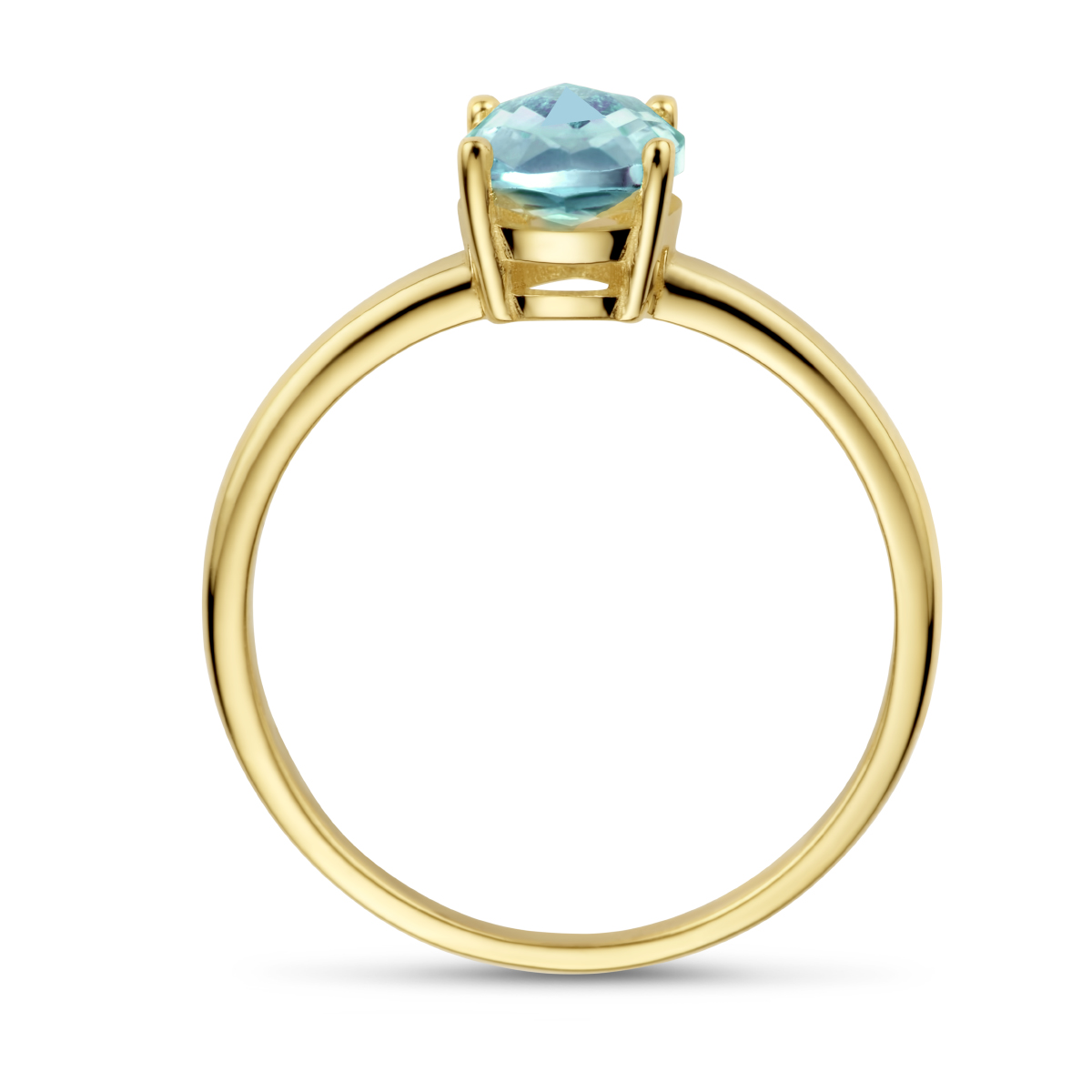 14k Geelgouden ring uitgevoerd met sky blue topaas. De topaas heeft een steengewicht van 0.27ct.