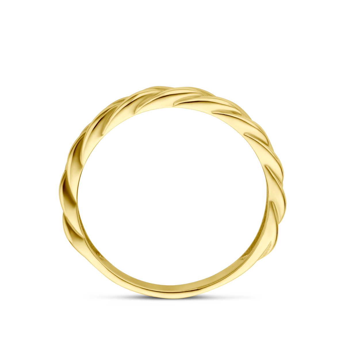 Geelgouden ring van 3mm breed uitgevoerd met een vossestaart schakelmotief.