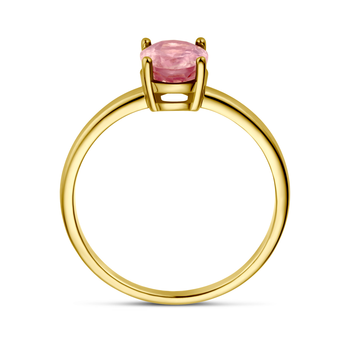 14k Geelgouden ring uitgevoerd met roze toermalijn. De steen heeft een afmeting van 8x6mm.