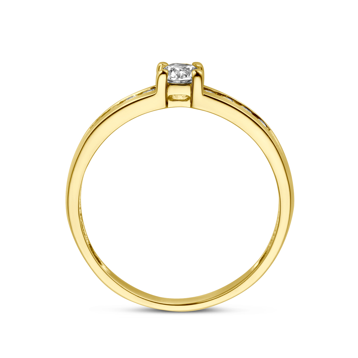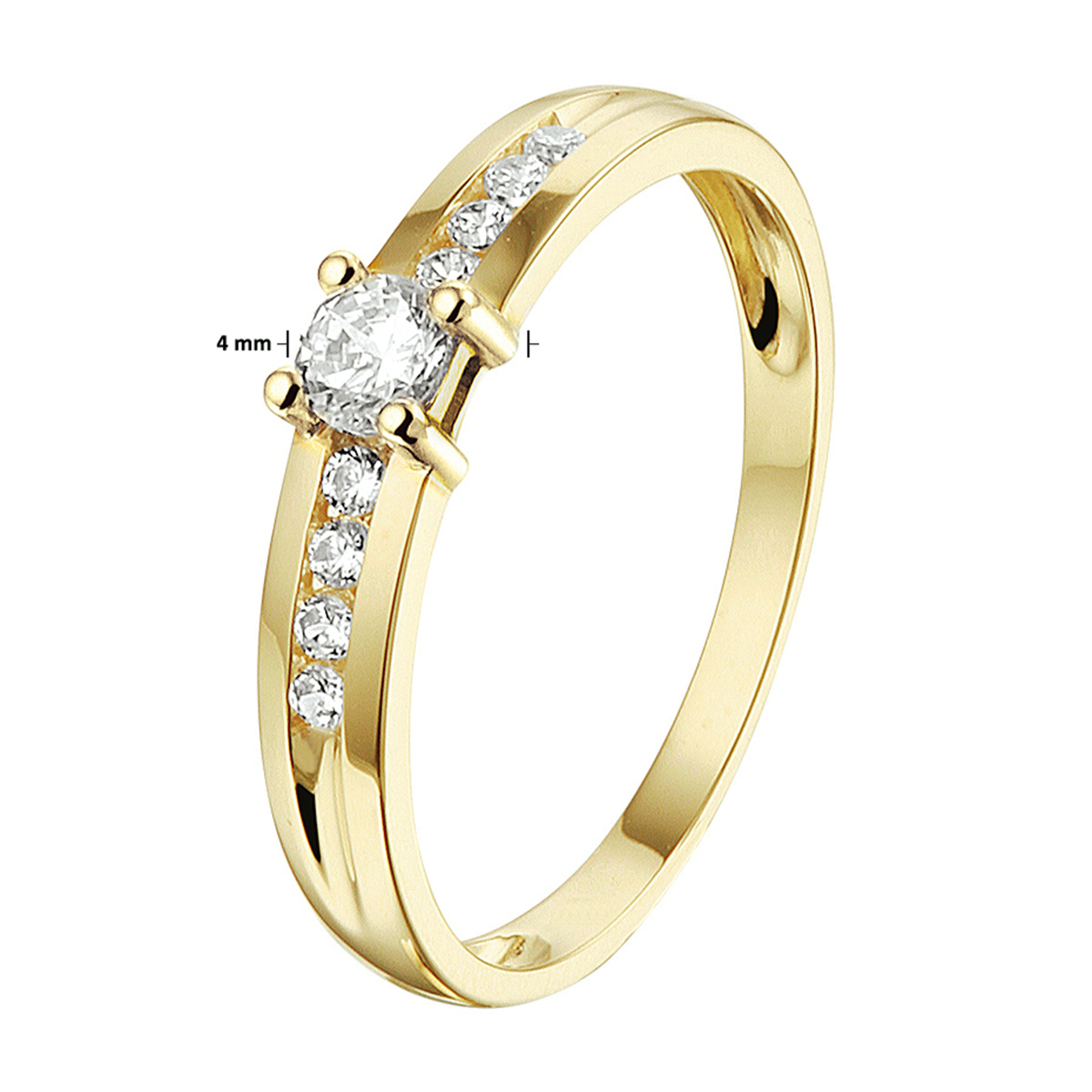 Stijlvolle geelgouden ring met een schitterende rij van zirkonia. Tip: Combineer deze ring met bijpassende sieraden uit onze collectie of vanuit je eigen stash en creeer zo elke keer weer een nieuwe look.