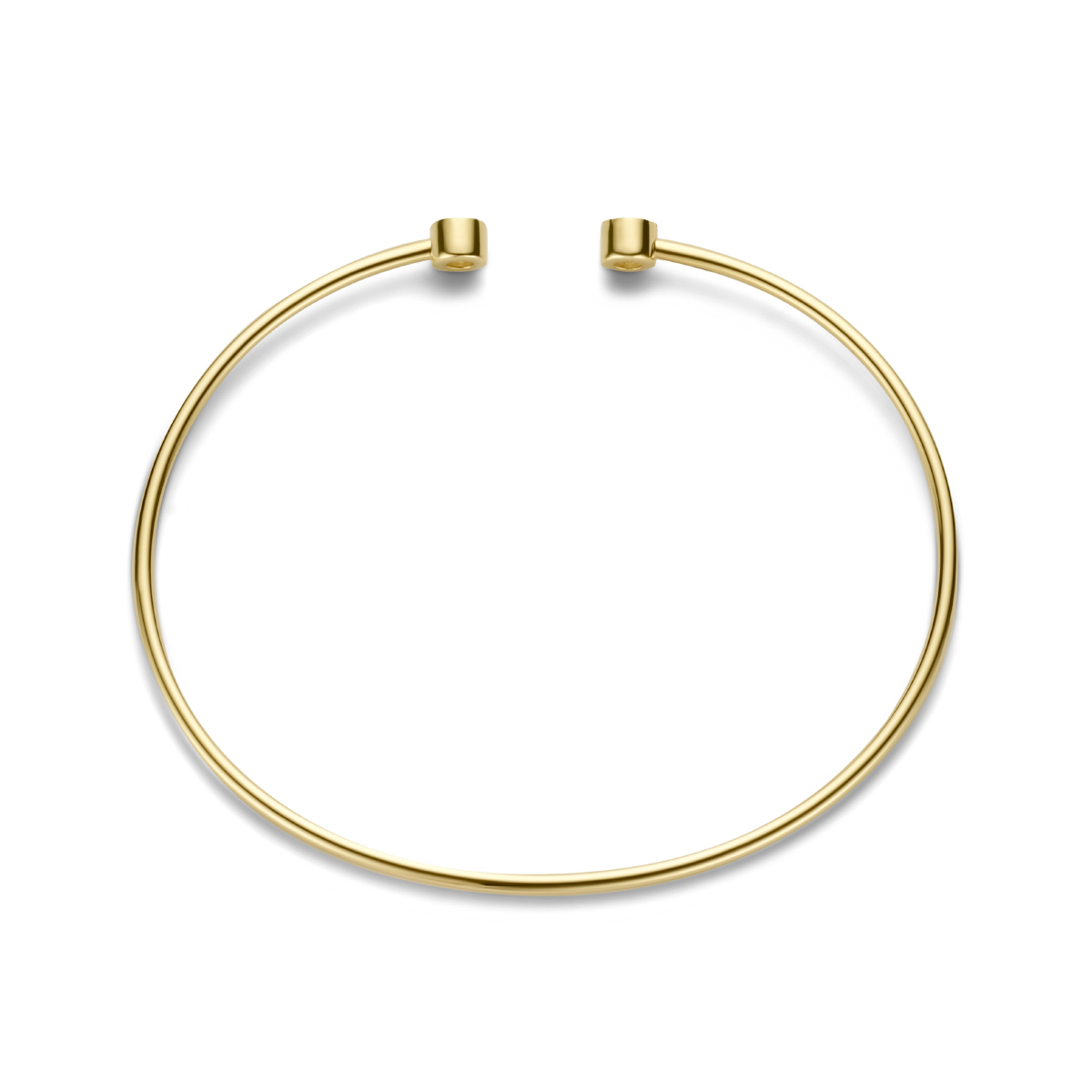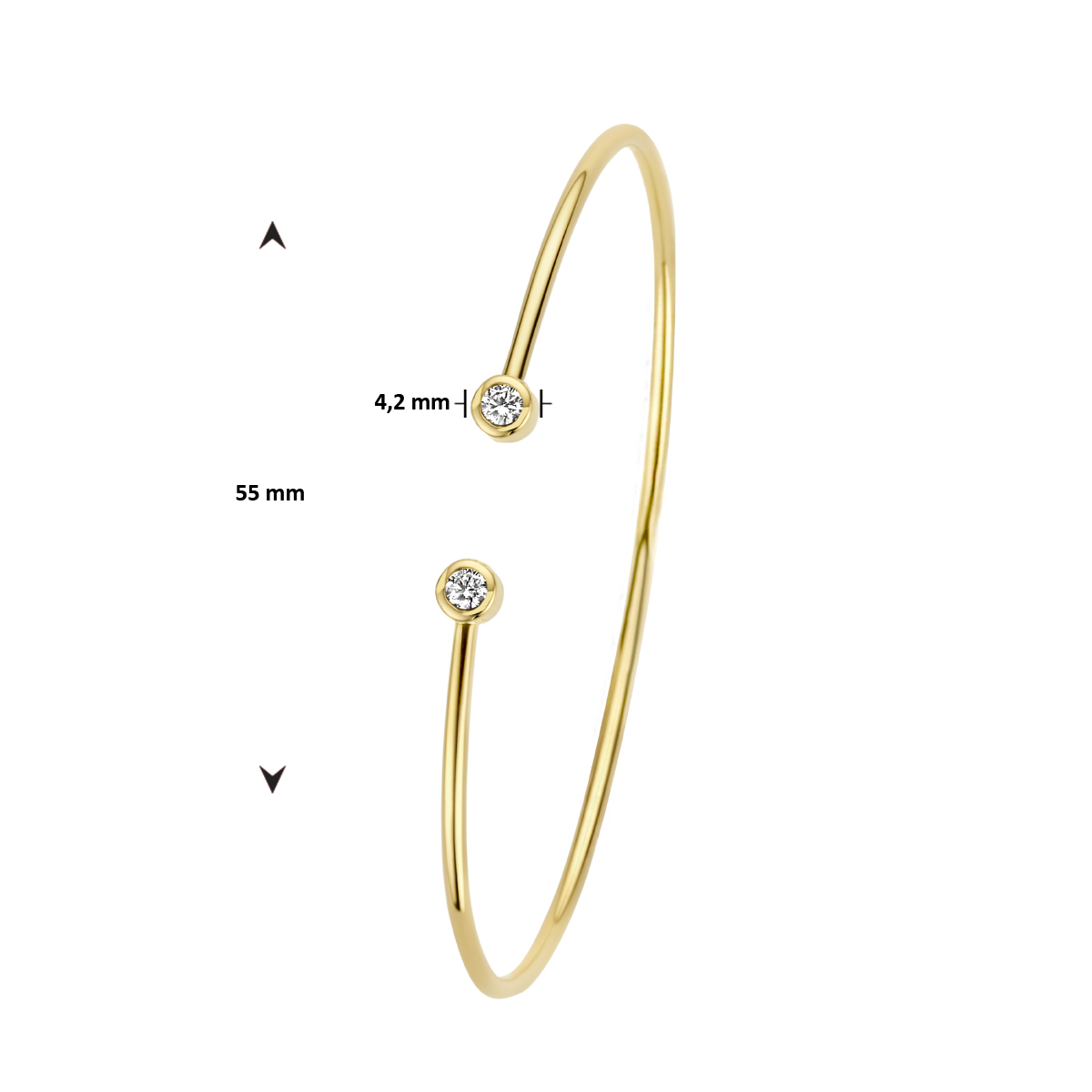 14kt. Geelgouden armband spang uitgevoerd met schitterende diamanten. De spang heeft een binnendiameter van 55mm.