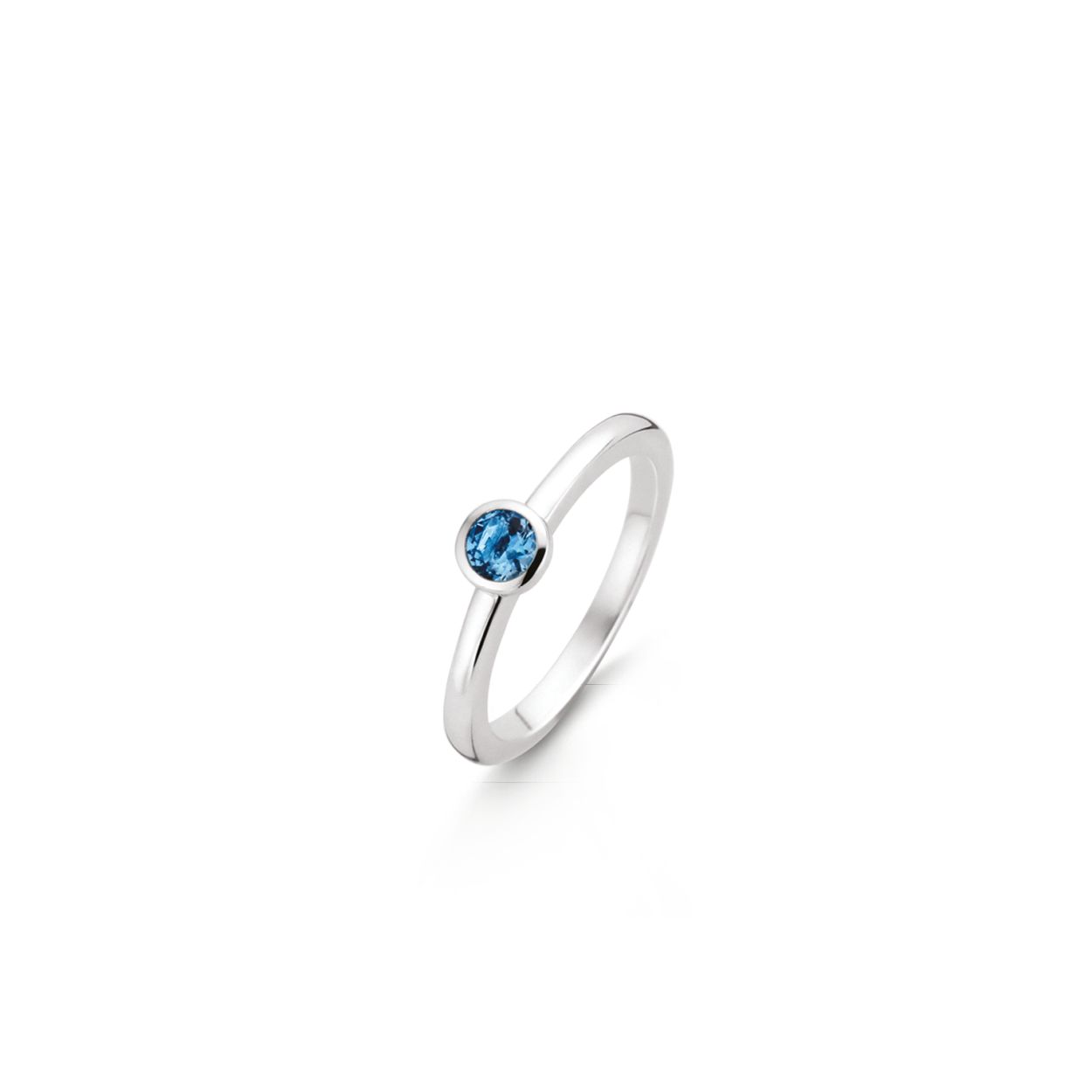 Een donkerblauwe ronde steen is het middelpunt van deze zilveren TI SENTO - Milano ring 1868DB. Oceaanblauw omringd in zilver. Magisch en dromerig.