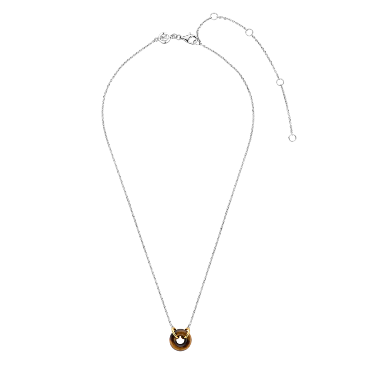Het pronkstuk van deze TI SENTO - Milano zilveren ketting 3971TE/42 is de bruine tiger-eye steen in het midden, omhuld door een verfijnde gold-plated zetting. De ronde vorm maakt het een artistiek geheel en de rijke aardse tinten geven de ketting een krachtige look. De ketting is vervaardigd uit 925 sterling zilver. De extra veilige sluiting is speciaal ontworpen zodat het altijd bij je blijft. De lengte van de ketting is 42 cm.