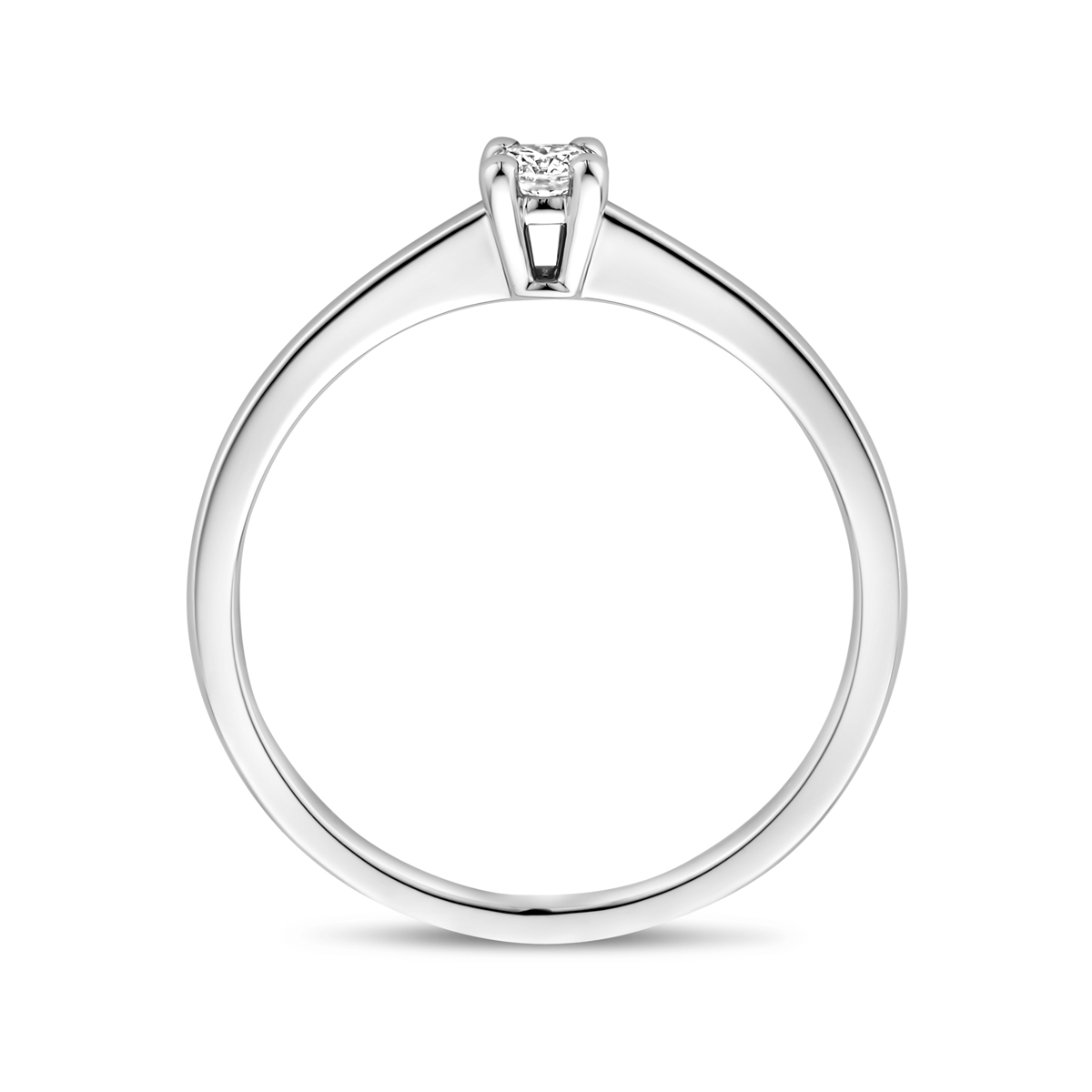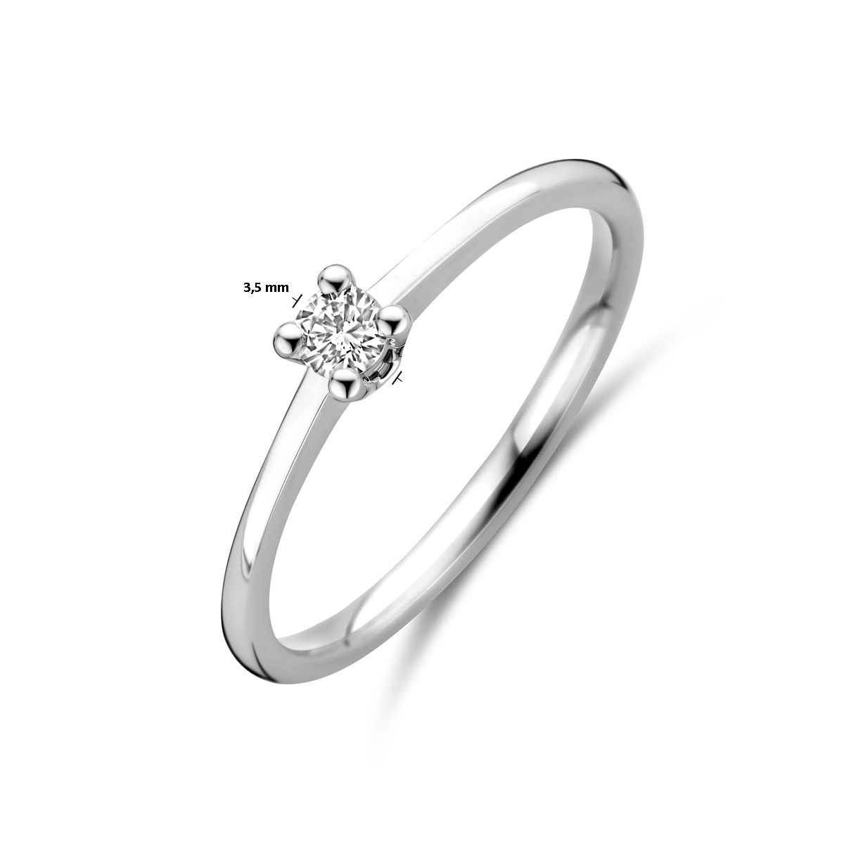 14k Witgouden ring uitgevoerd met diamant. De ring heeft een breedte van 3.5mm. Het diamantgewicht is 0.10ct.