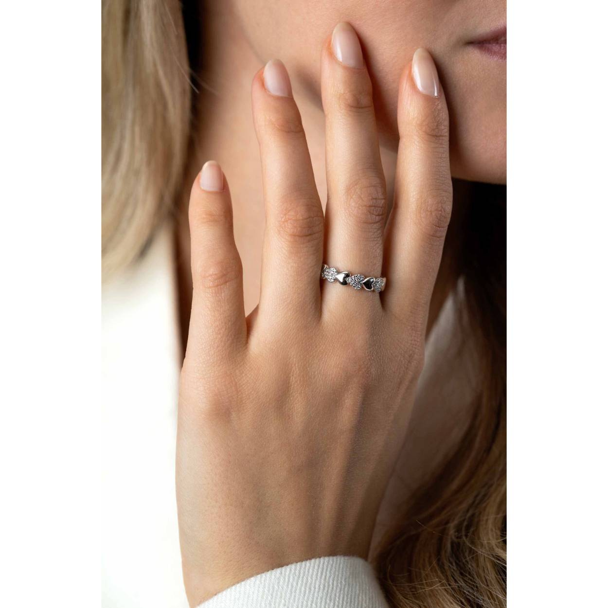 ZINZI zilveren ring met hartjes, afwisselend bezet met witte zirconia's. Gemakkelijk te combineren met andere zilveren Zinzi ringen. Mix & match! De ring is vervaardigd van eerste gehalte zilver (925) en voorzien van een extra rodiumlaag voor langdurige glans.